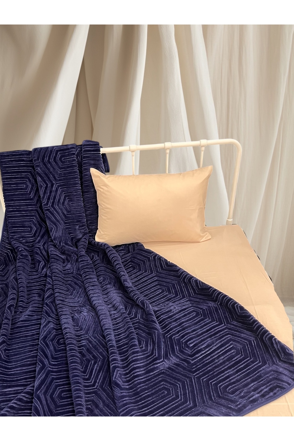 Tek Kişilik Battaniye Kalın Embos Lacivert Tek Kişilik Battaniye Kalın Embos Lacivert TYCE4CCA6E66627D00 155 x 220