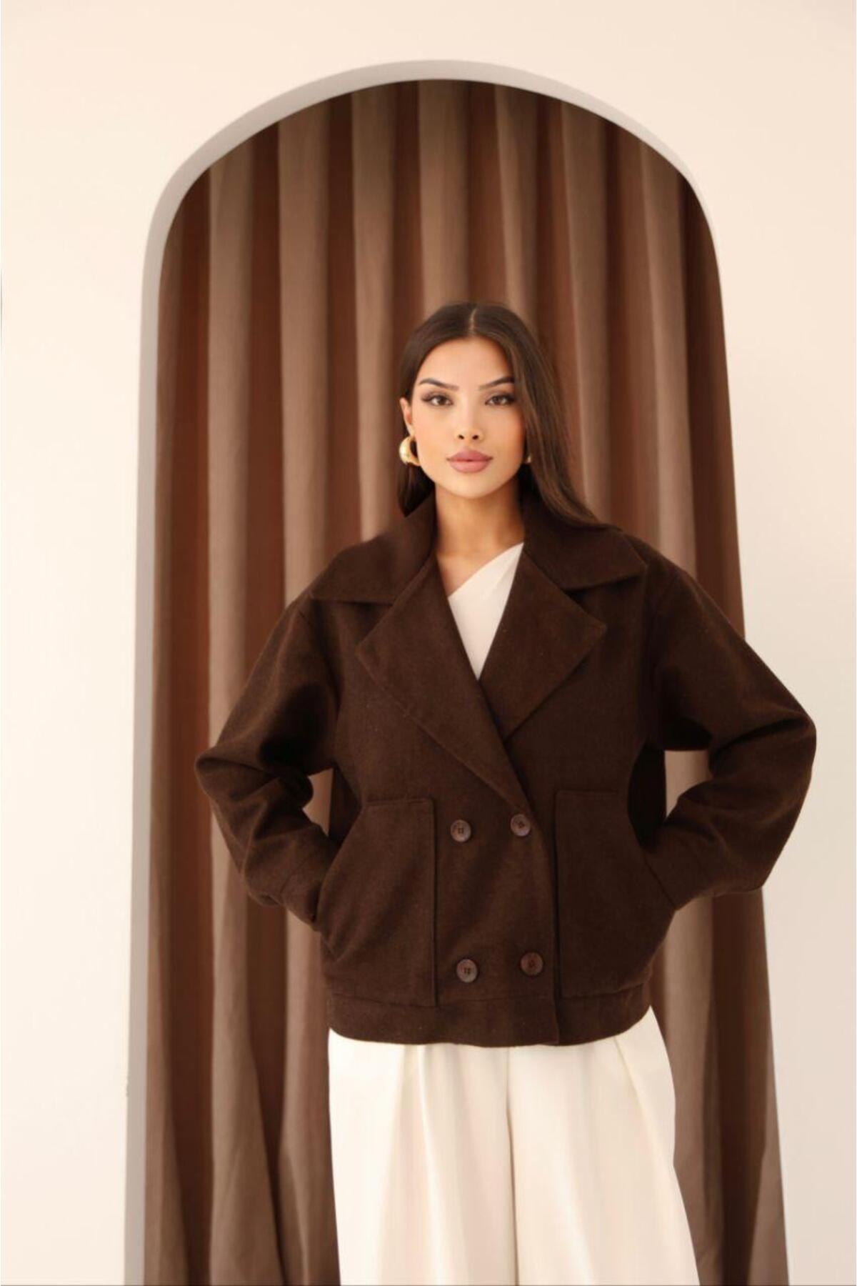 Kadın Kahverengi Apoletli Kısa Kaşe Kaban Kadın Kahverengi Apoletli Kısa Kaşe Kaban 3939093 L