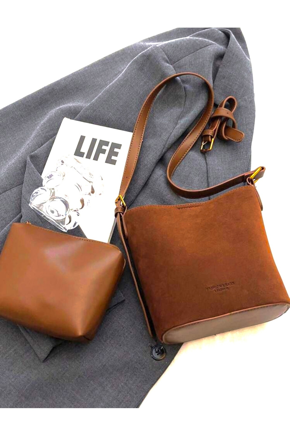 Retro Tarzı Rahat Büyük Kapasiteli Yavrulu 2'si 1 Arada Kadın Kova Tote Omuz Çantası Retro Tarzı Rahat Büyük Kapasiteli Yavrulu 2'si 1 Arada Kadın Kova Tote Omuz Çantası İambtşykvre