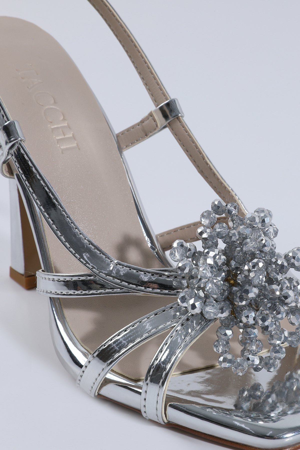 Seren Boncuk Çiçek Detaylı Gümüş Topuklu Ayakkabı Seren Boncuk Çiçek Detaylı Gümüş Topuklu Ayakkabı 1006 40