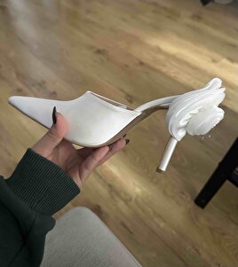 Lilia Saten Gül Detaylı Topuklu Beyaz Ayakkabı Lilia Saten Gül Detaylı Topuklu Beyaz Ayakkabı 1012 40