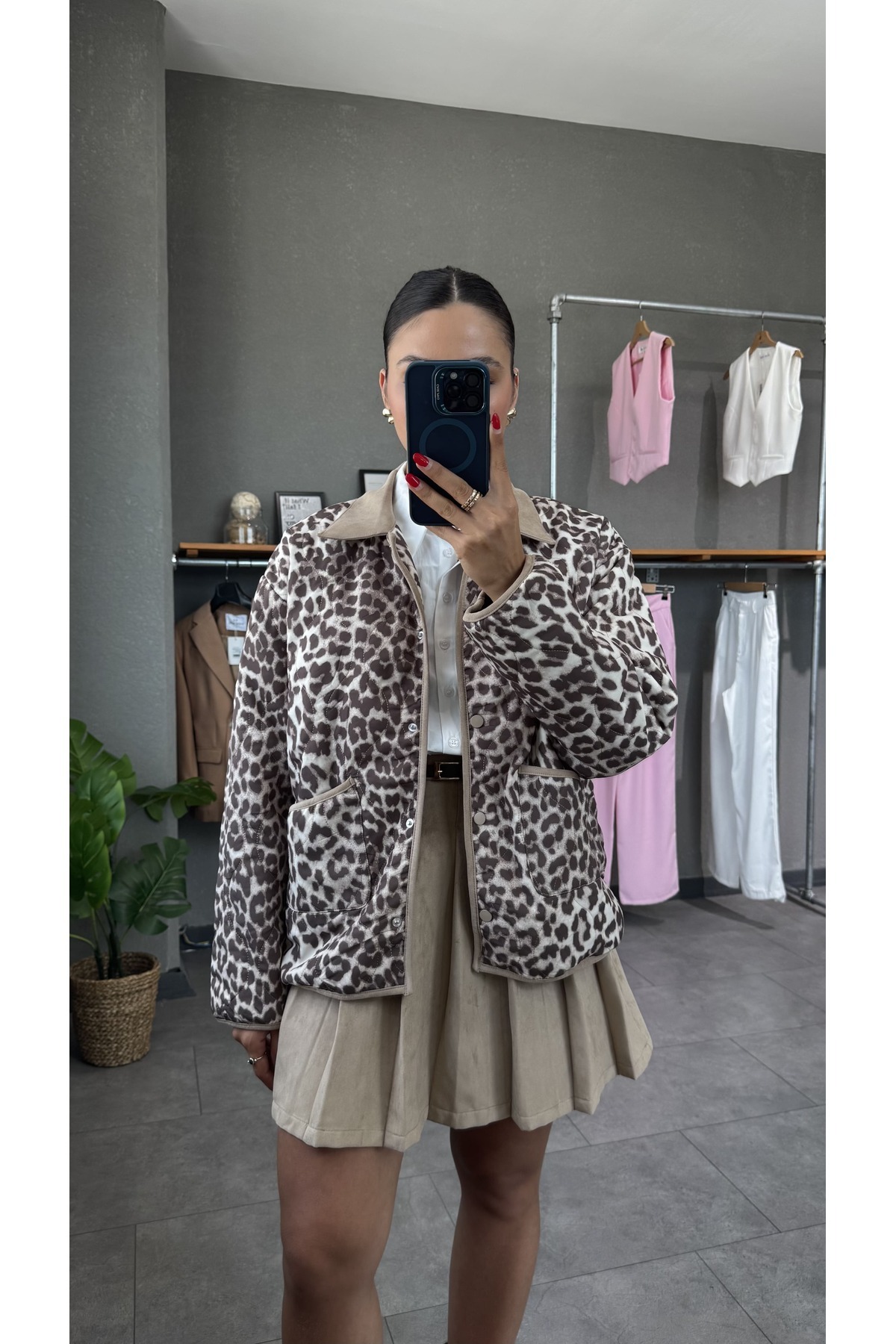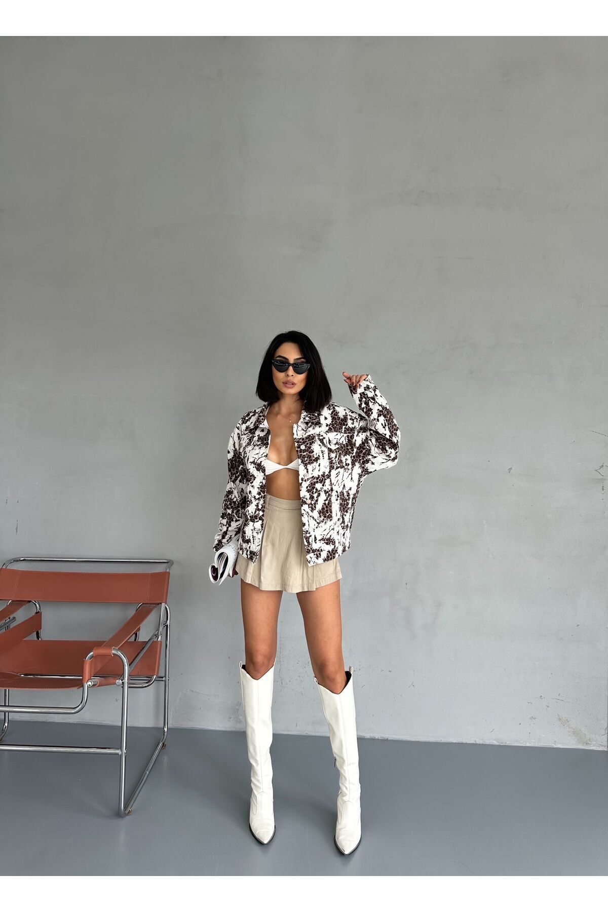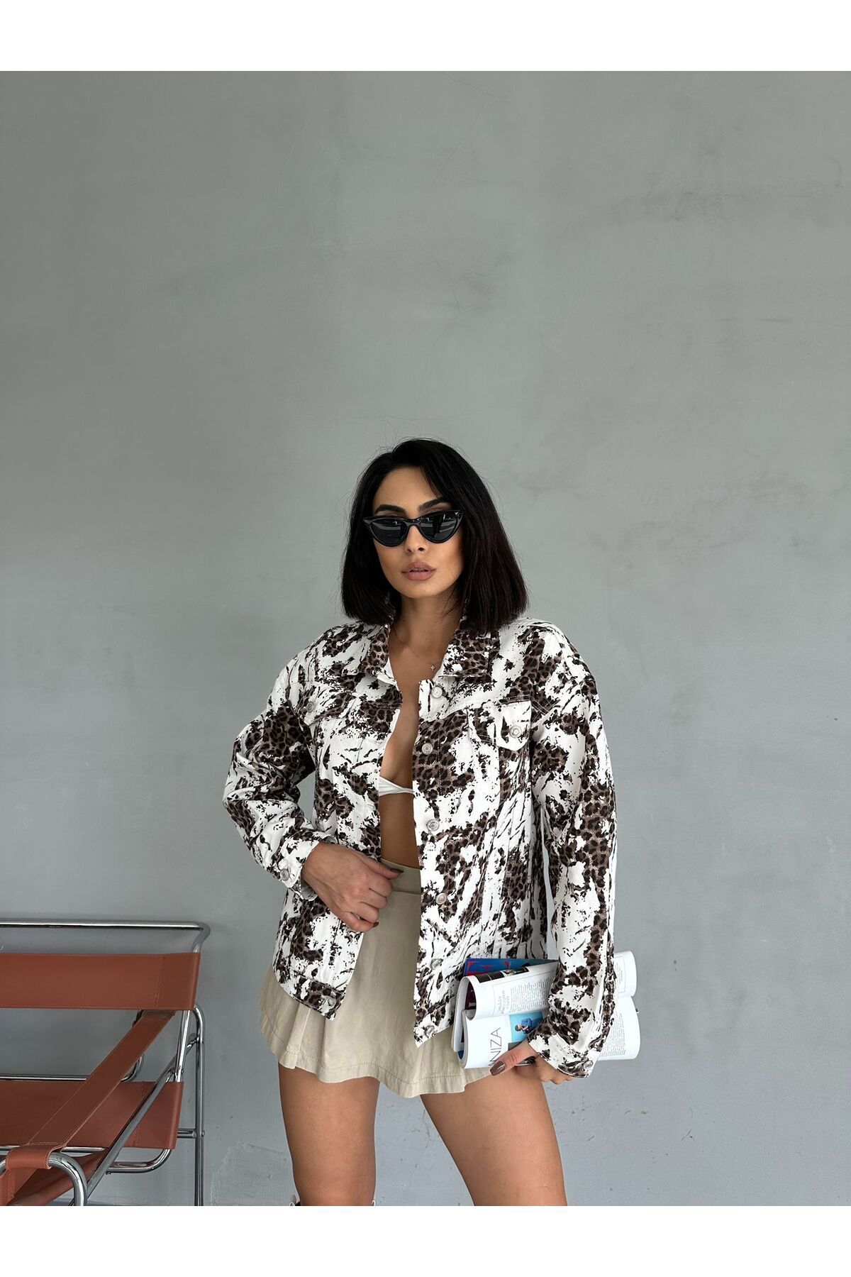 ZEO BASİC LEOPAR CEKET DENİM KUMAŞ BEYAZ-KAHVE ZEO BASİC LEOPAR CEKET DENİM KUMAŞ BEYAZ-KAHVE 3715 XL