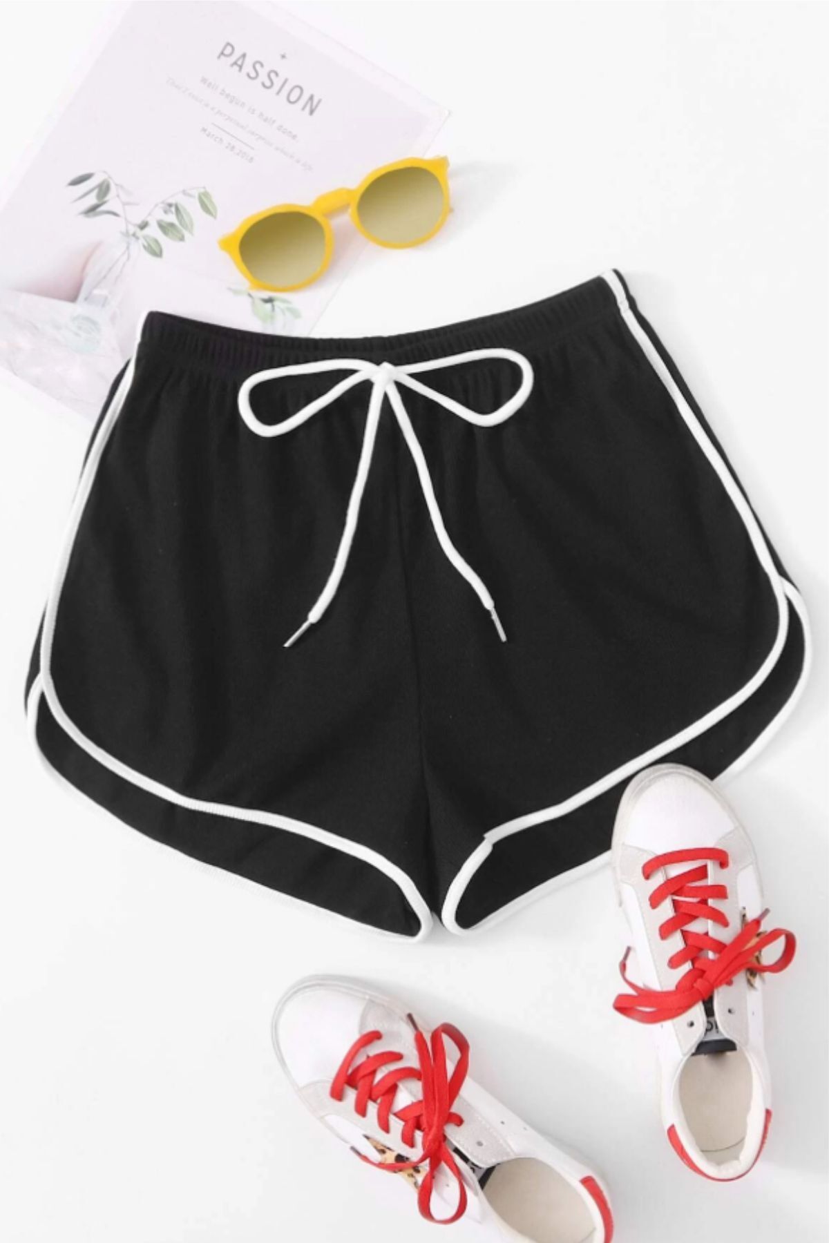 Siyah Örme Kumaş Şeritli Yüksek Bel Şort Elastik Beli Ayarlanabilir Bağcıklı Siyah Örme Kumaş Şeritli Yüksek Bel Şort Elastik Beli Ayarlanabilir Bağcıklı 20S-13Şort L/XL