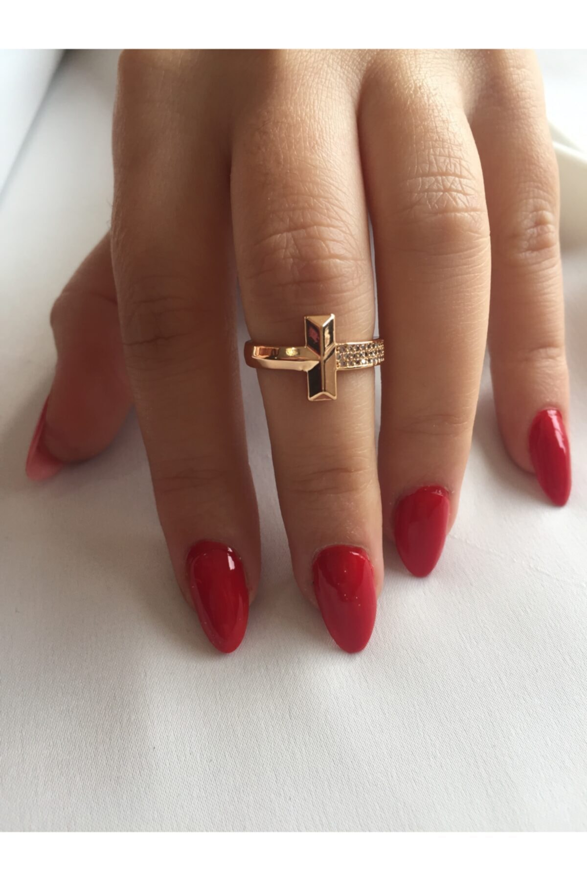 Zirkon taşlı çift yüzük görünümlü ayarlanabilir kadın rose gold yüzük Zirkon taşlı çift yüzük görünümlü ayarlanabilir kadın rose gold yüzük Y-05796 M
