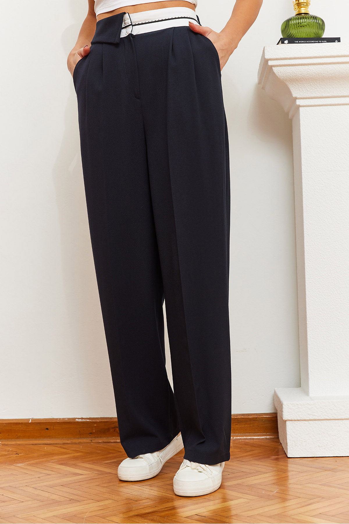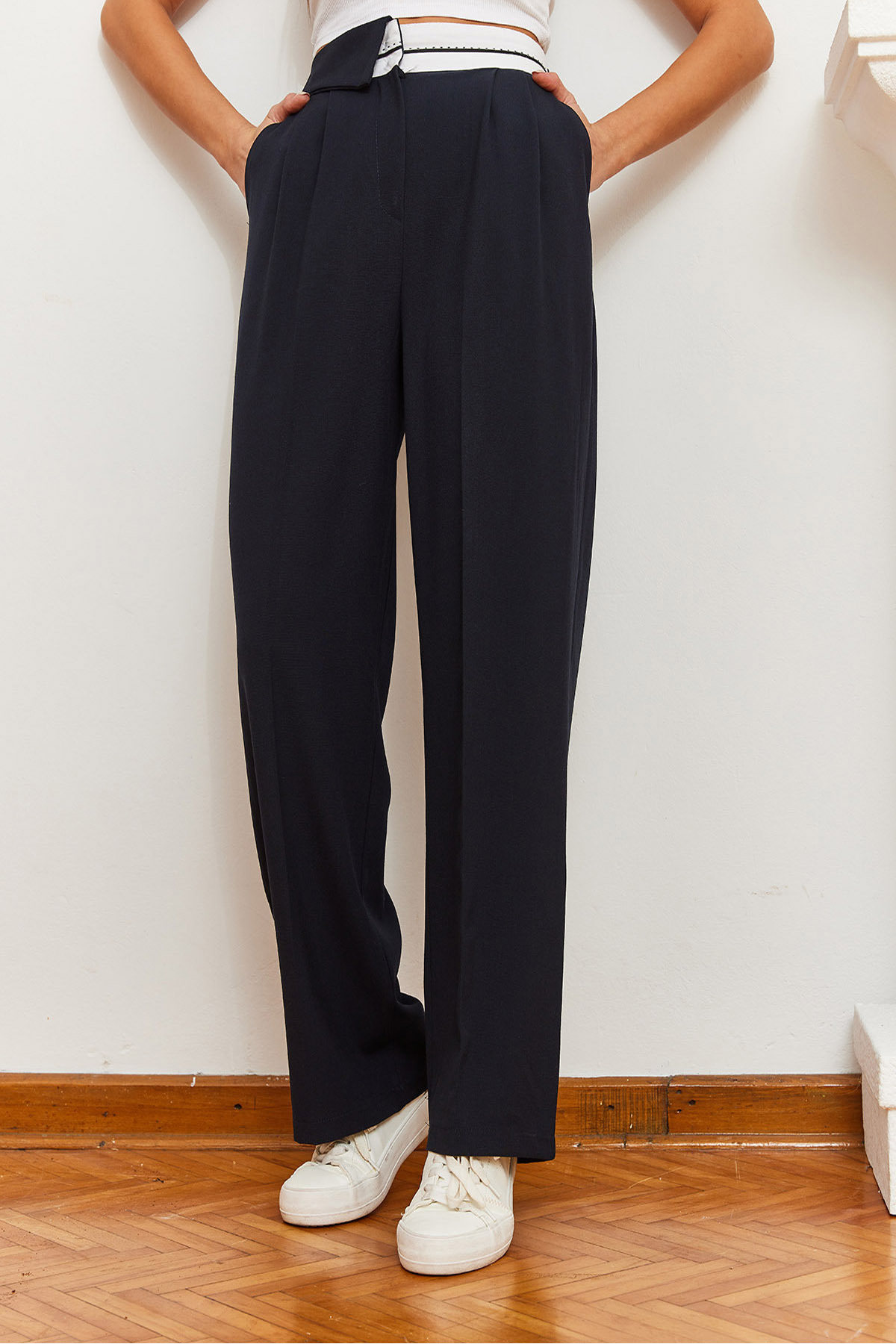 Kadın Bol Paça Asimetrik Bel Düğmeli Palazzo Pantolon 60361004 Kadın Bol Paça Asimetrik Bel Düğmeli Palazzo Pantolon 60361004 XL