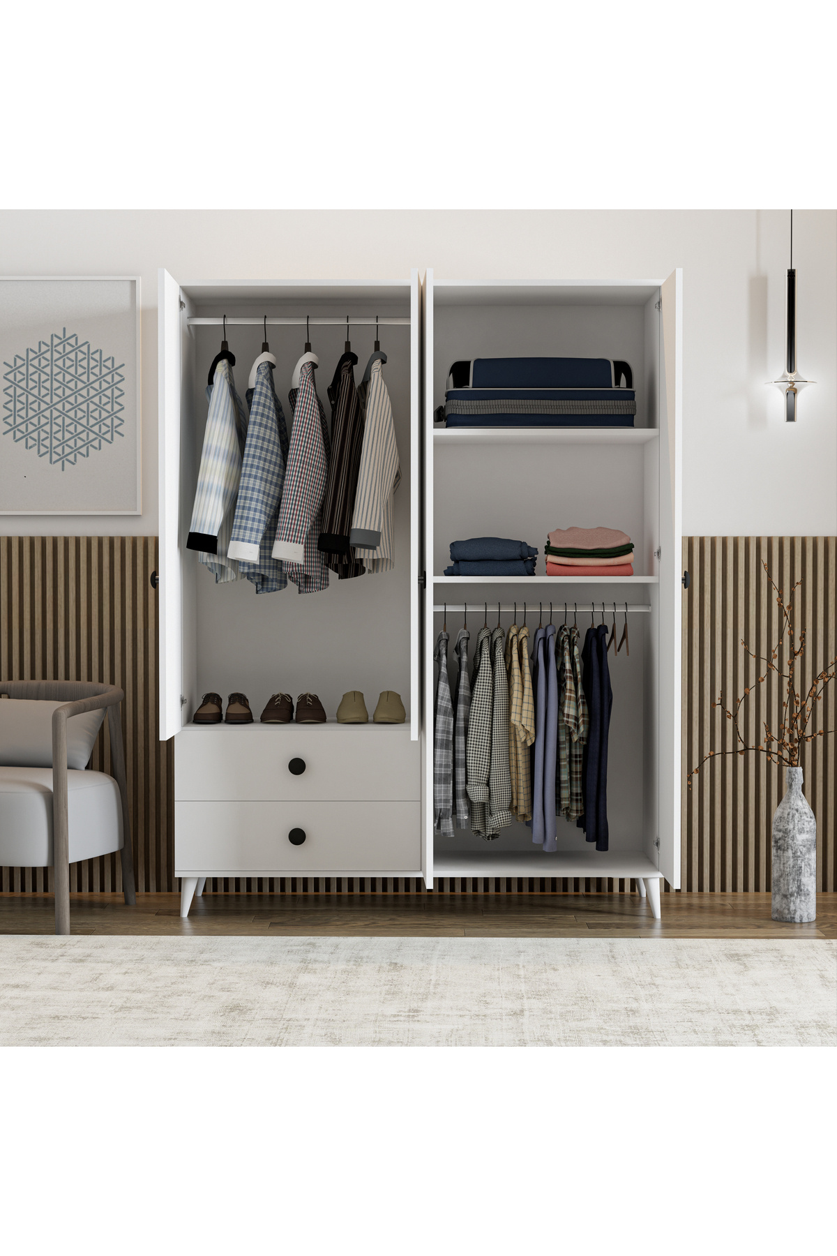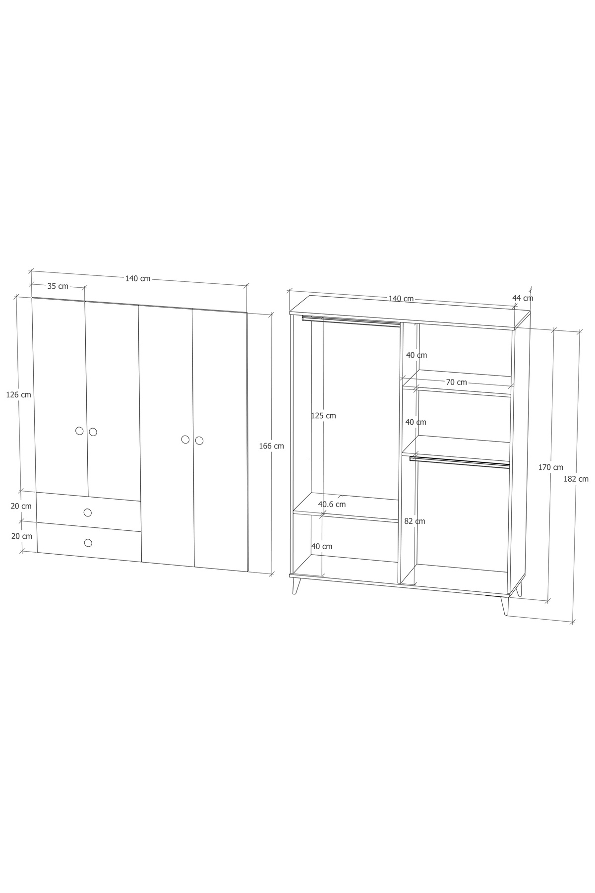 Opal 4 Kapak 2 Çekmece Gardırop Opal 4 Kapak 2 Çekmece Gardırop İMB4K2Ç 182 cm