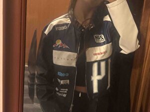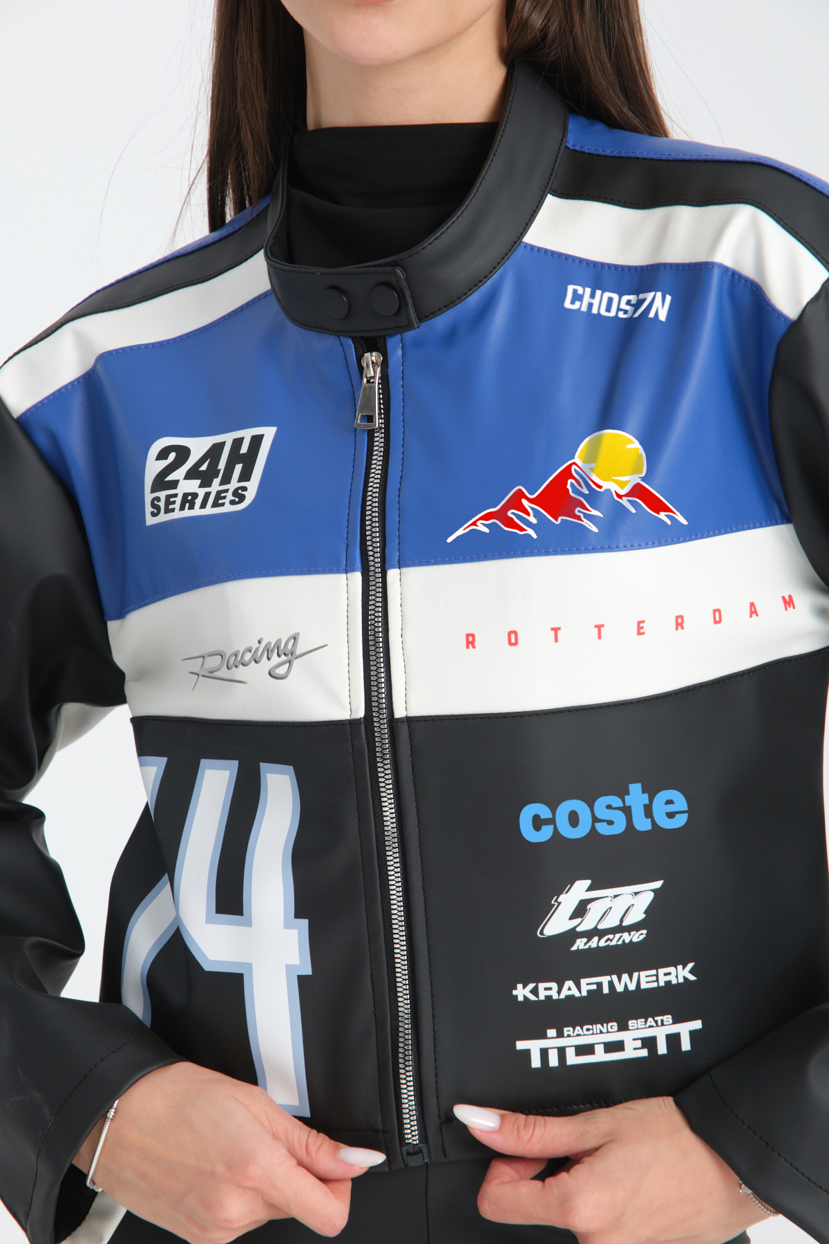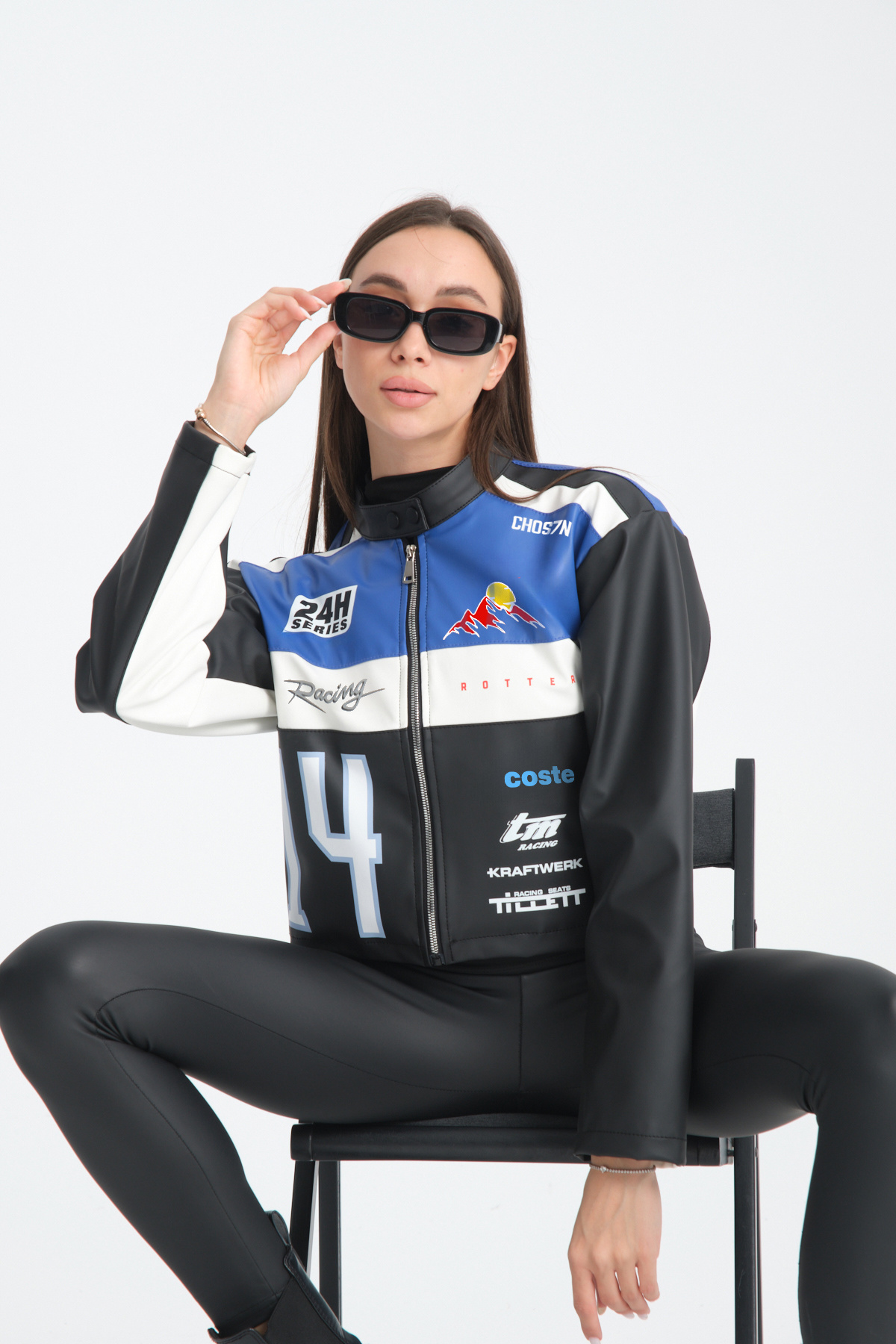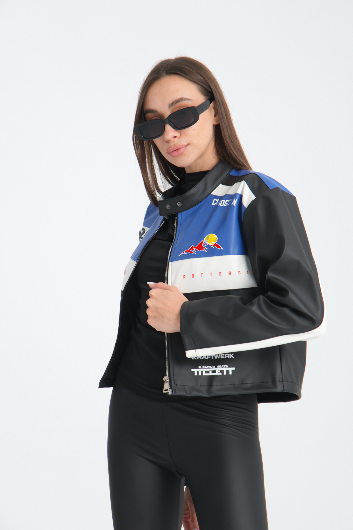 Kadın Oversize Baskılı Deri Şeritli Motorcu Montu Garnili Fermuarlı Yarışçı Ceketi Bomber Kolej Mont Kadın Oversize Baskılı Deri Şeritli Motorcu Montu Garnili Fermuarlı Yarışçı Ceketi Bomber Kolej Mont FTNES-1 L
