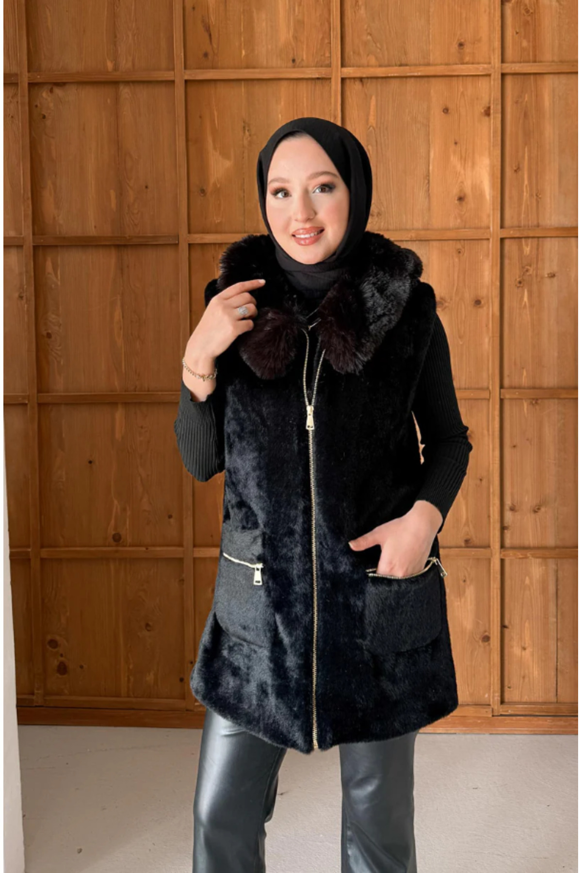 Kadın Bel Bağlamalı İnce Yelek Siyah Kadın Bel Bağlamalı İnce Yelek Siyah 266-3016 L/XL