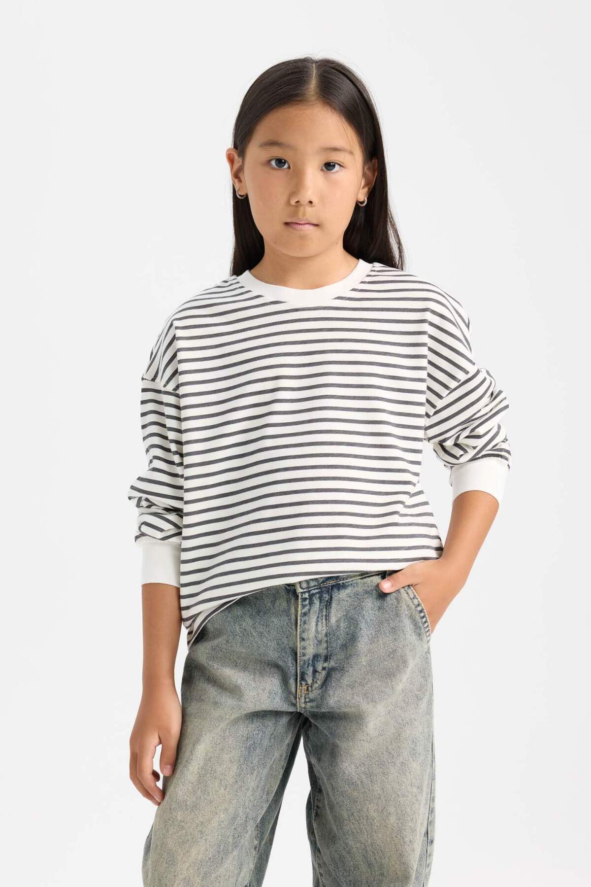 Kız Çocuk Relax Fit Bisiklet Yaka Çizgili Sweatshirt D6503A8NS Kız Çocuk Relax Fit Bisiklet Yaka Çizgili Sweatshirt D6503A8NS 13-14 Yaş
