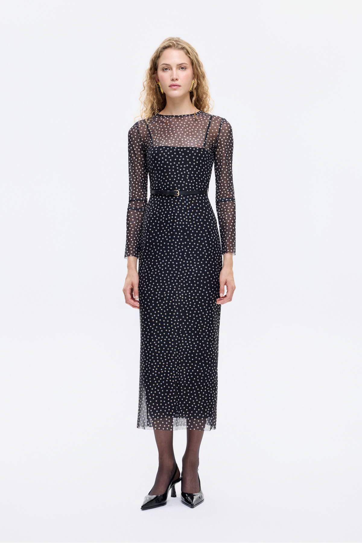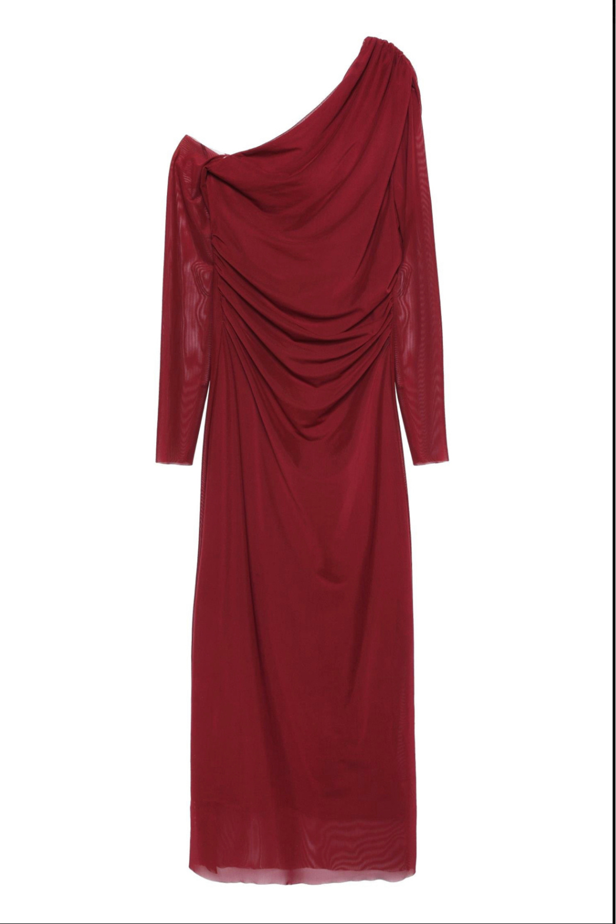 Asimetrik Yaka Tül Midi Elbise kırmızı Asimetrik Yaka Tül Midi Elbise kırmızı 24K31942 L