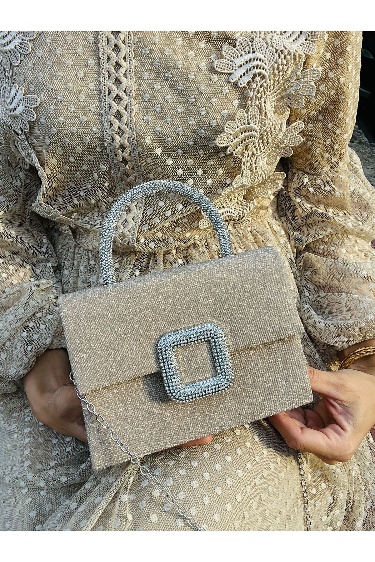 Kadın Saten Kumaş Abiye Çanta – Kristal Taşlı Tokalı - Zincir uzun askı Kadın Saten Kumaş Abiye Çanta – Kristal Taşlı Tokalı - Zincir uzun askı VAROLABİYE تک سایز