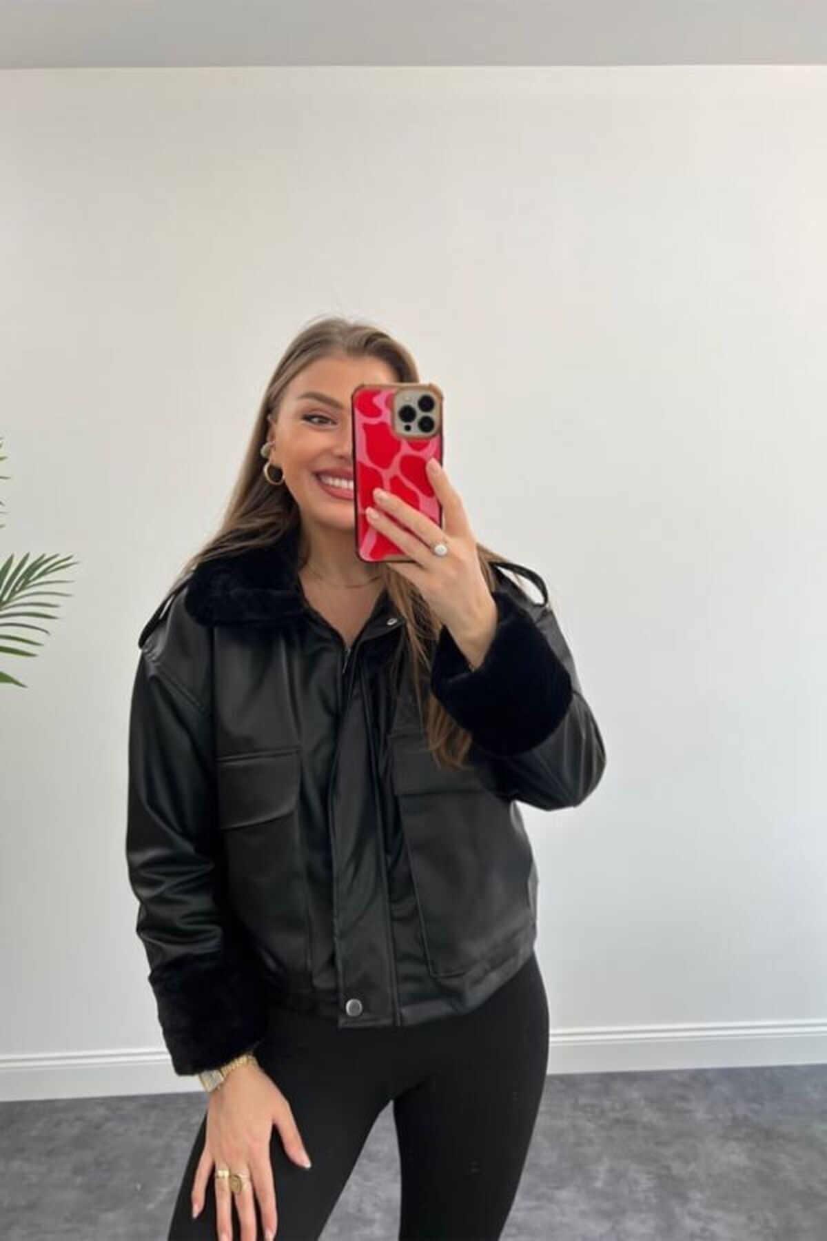 İçi Komple İpek Kürklü Siyah Kadın Premium Deri Mont İçi Komple İpek Kürklü Siyah Kadın Premium Deri Mont GM44003 L