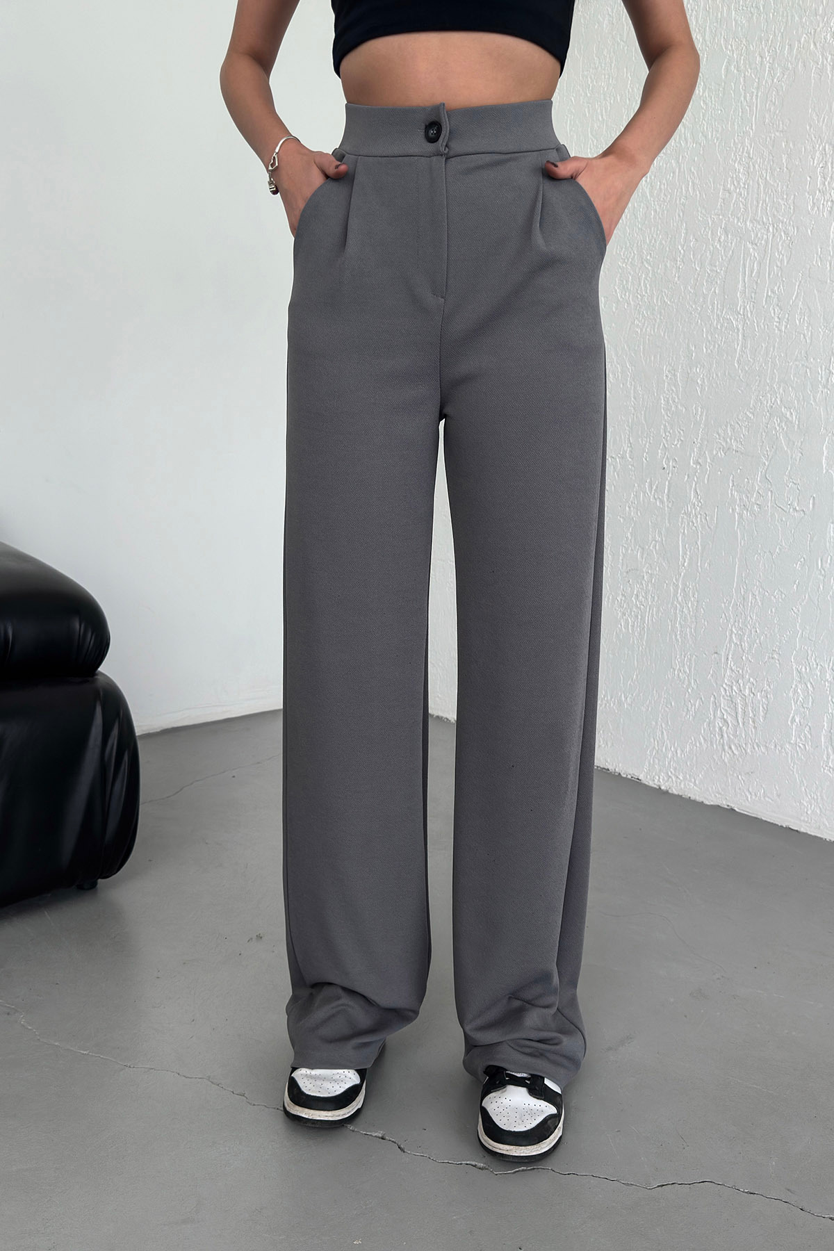 Kadın Rena Kemerli Likralı Antrasit Palazzo Pantolon Kadın Rena Kemerli Likralı Antrasit Palazzo Pantolon 1377 46