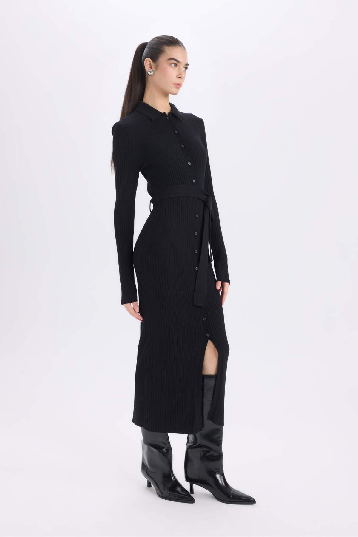 Fitted Vücudu Saran Gömlek Yaka Basic Düz Uzun Kollu Midi Triko Elbise D8595AX24WN Fitted Vücudu Saran Gömlek Yaka Basic Düz Uzun Kollu Midi Triko Elbise D8595AX24WN 3194144 2XL
