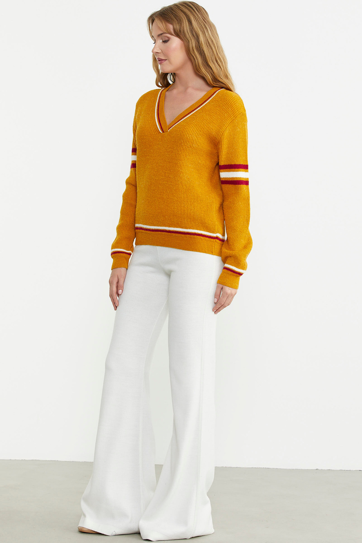 V Yaka Çizgi Kombinli Triko Kazak - Güneş V Yaka Çizgi Kombinli Triko Kazak - Güneş 24K2115-32497.0001 L