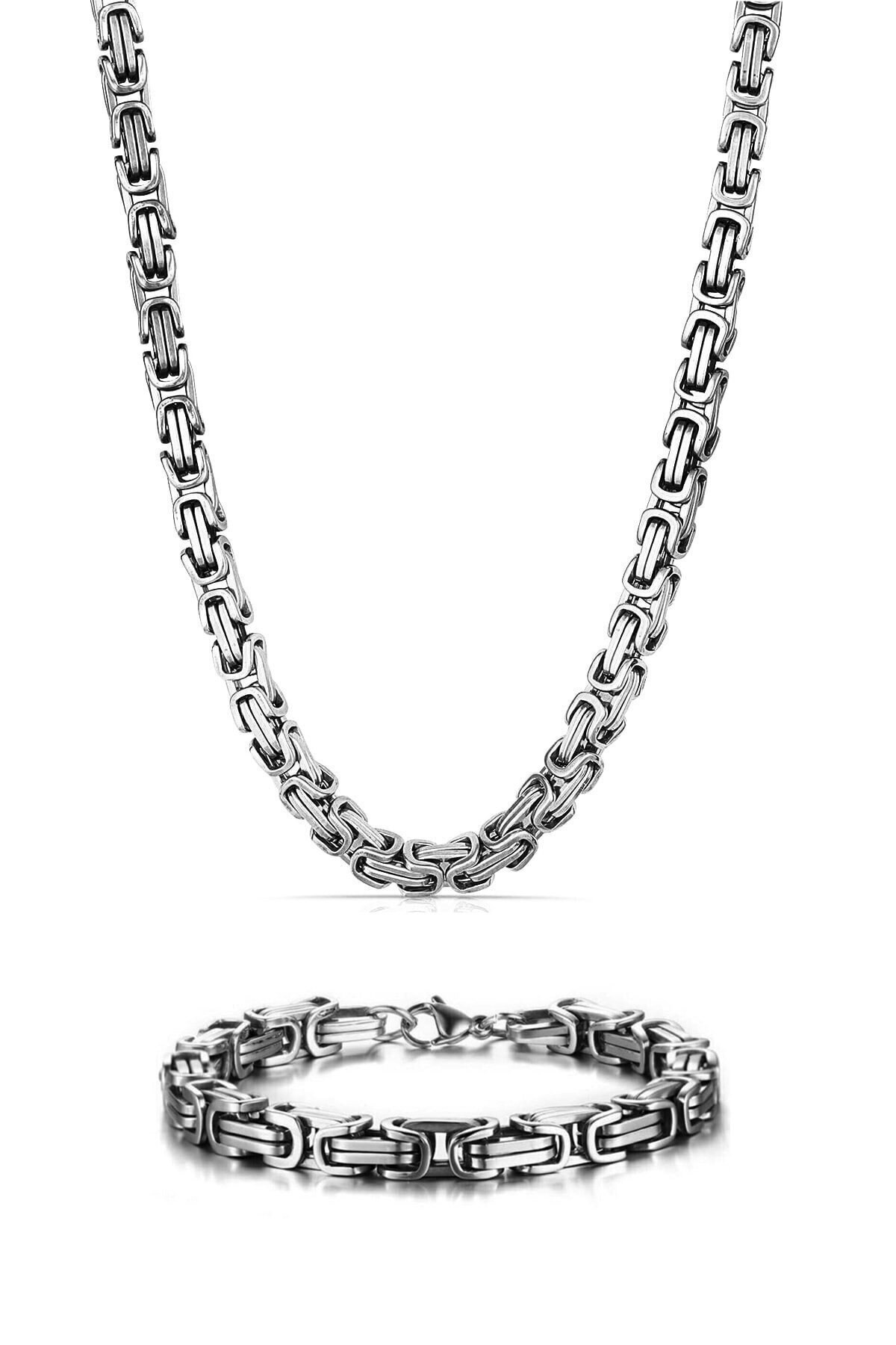 Erkek Çelik Set - 4.5mm Kral • Işıklı Kutuda • Sevgiliye • Eşe • Babaya Bileklik Kolye Erkek Çelik Set - 4.5mm Kral • Işıklı Kutuda • Sevgiliye • Eşe • Babaya Bileklik Kolye VOG-YR-4.5MKRALÇBYZSET-1 70 cm