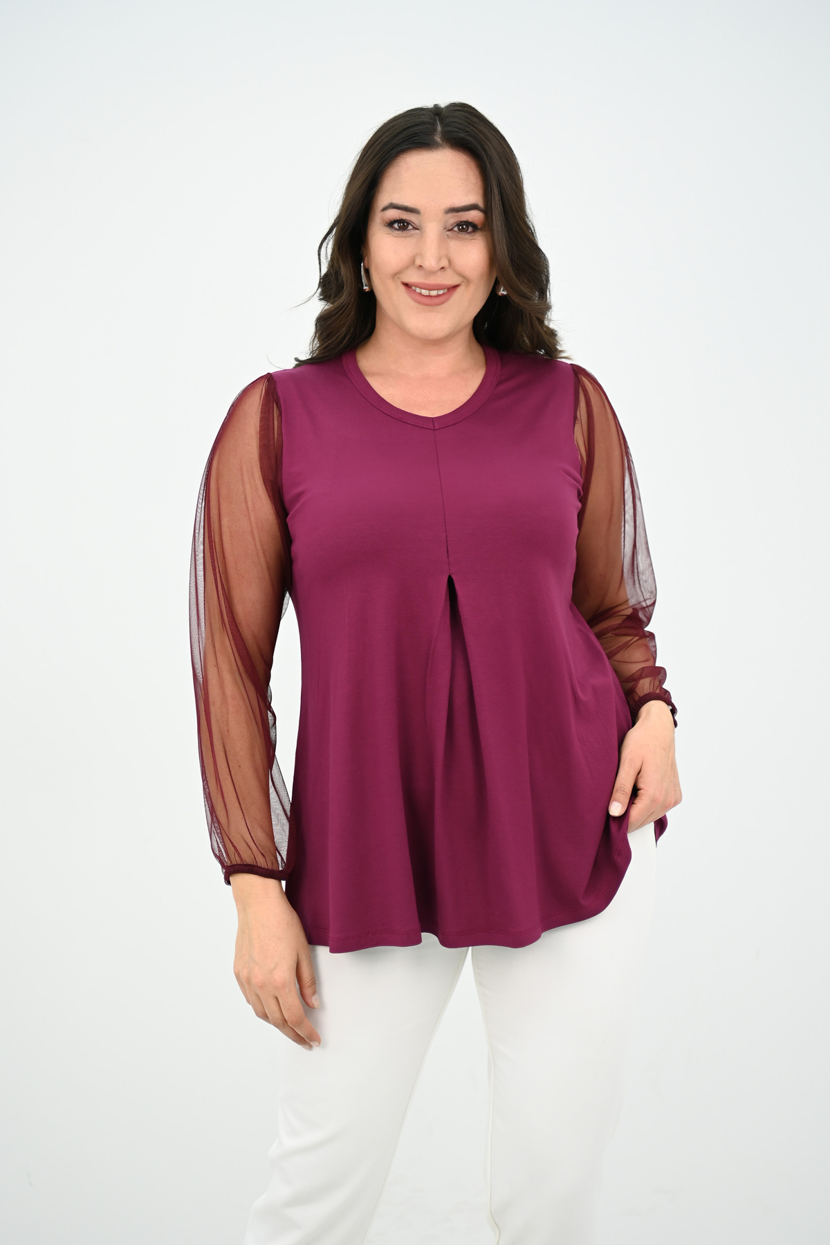 Kadın Büyük Beden Pileli V Yaka Bluz 1847-25 Kadın Büyük Beden Pileli V Yaka Bluz 1847-25 ADR-1847W024BLZ1 2XL
