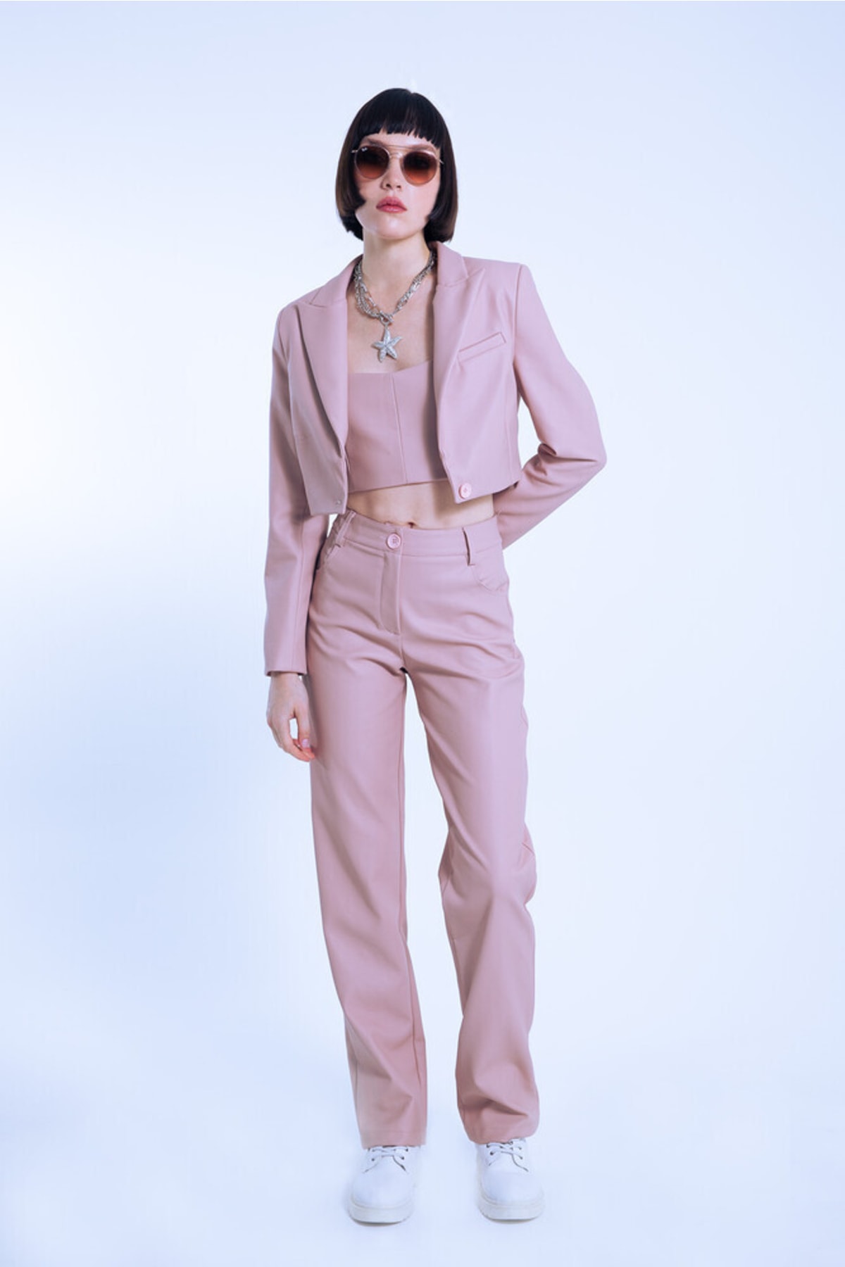 Kadın beli lastikli bol paça deri pantolon Kadın beli lastikli bol paça deri pantolon derp003 L