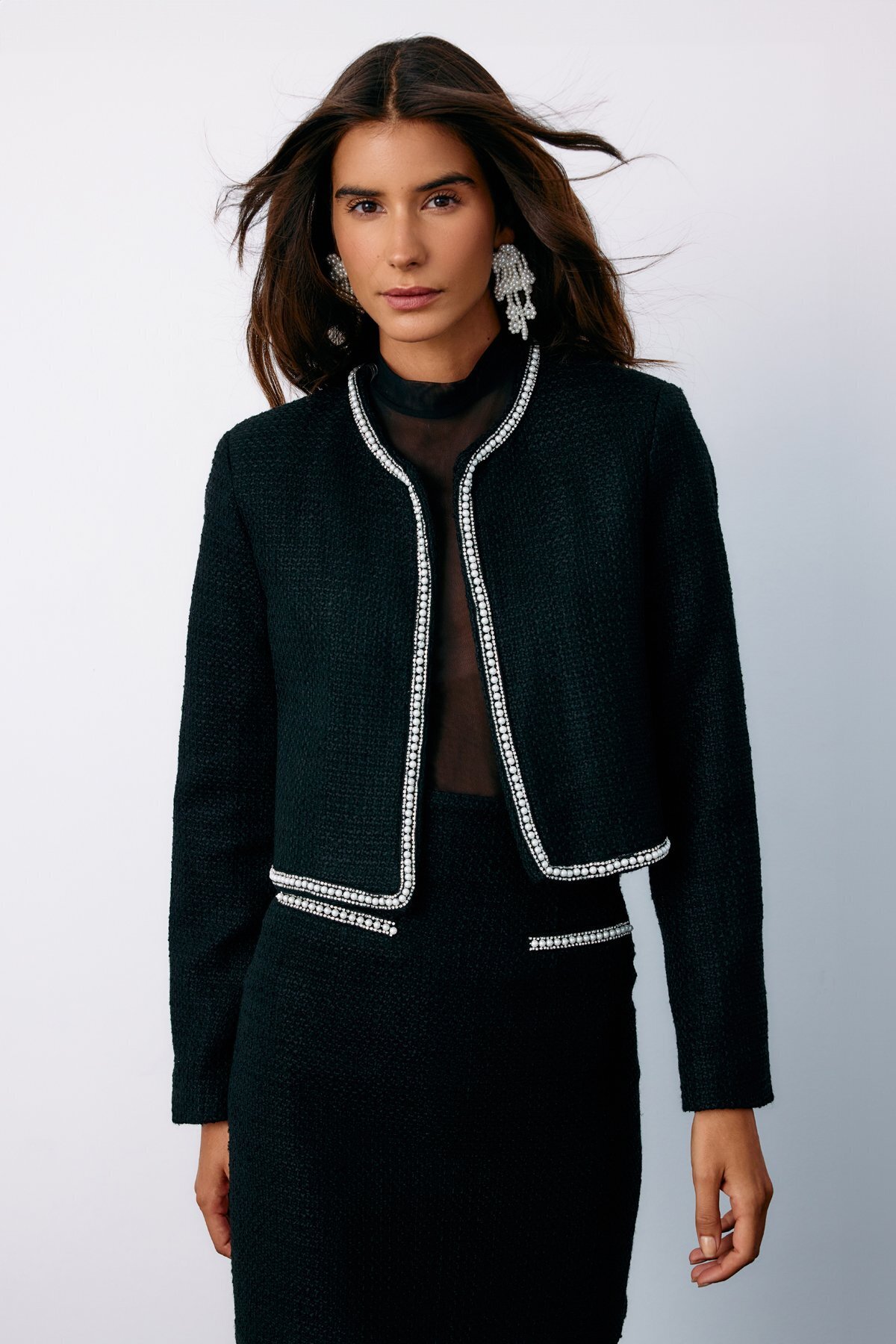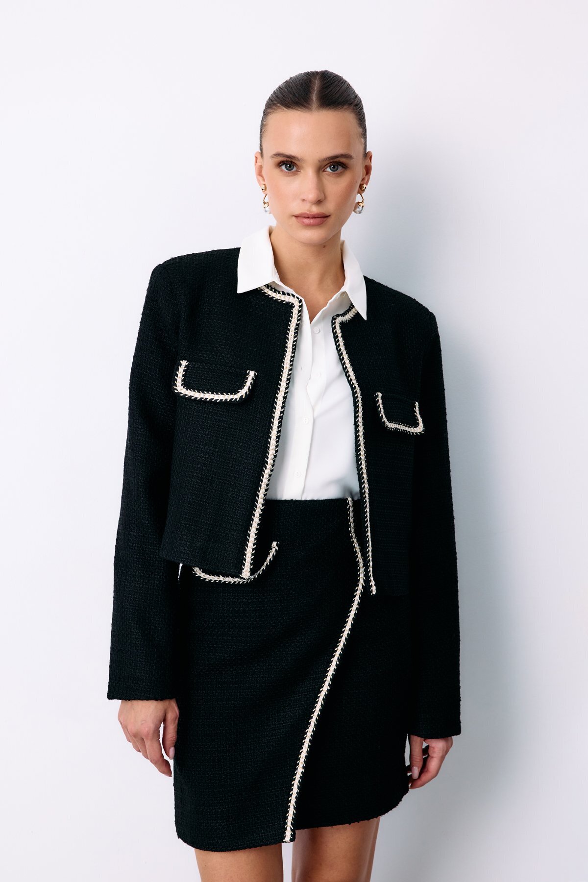 Aksesuar Detaylı Tüvit Ceket - SİYAH Aksesuar Detaylı Tüvit Ceket - SİYAH STN139KCE1544 42