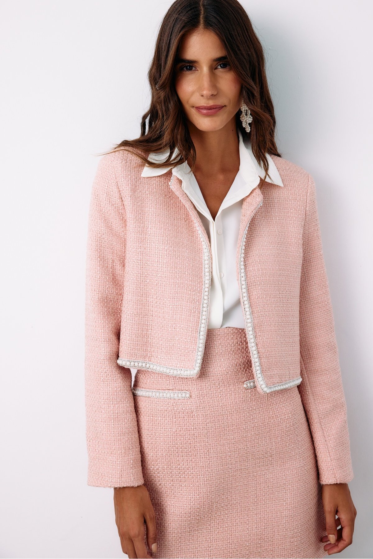 Aksesuar Detaylı Tüvit Ceket - Pudra Aksesuar Detaylı Tüvit Ceket - Pudra STN139KCE1544 42
