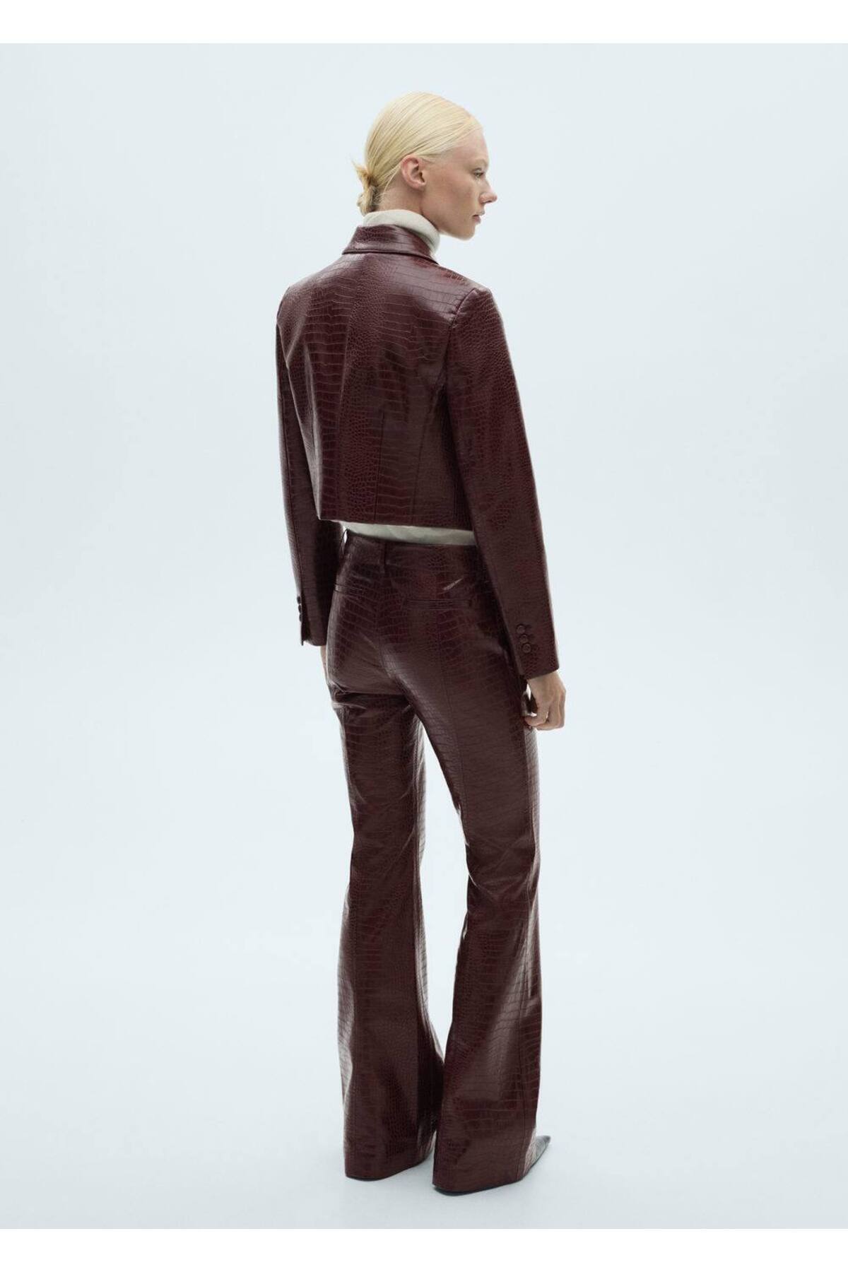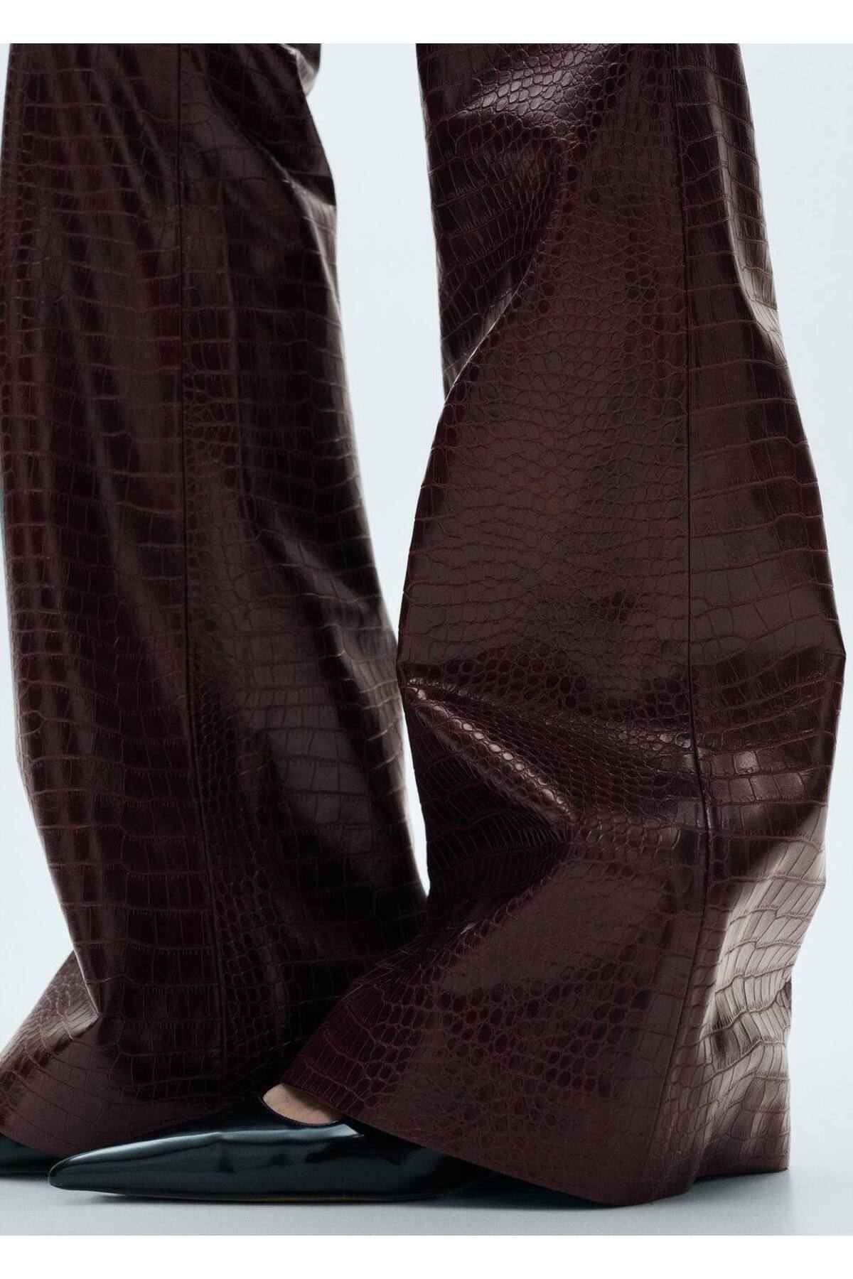 Yılan derisi görünümlü flare pantolon Yılan derisi görünümlü flare pantolon 77067678 42