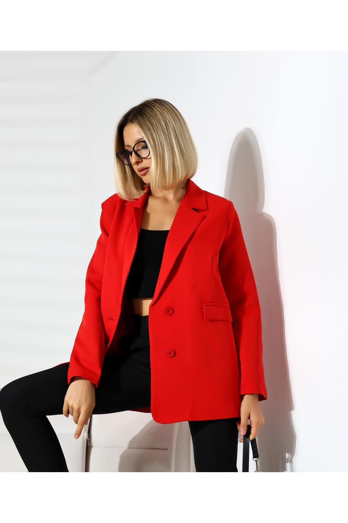 Oversize Double İki Düğmeli Astarlı Cepli Uzun Blazer Ceket Oversize Double İki Düğmeli Astarlı Cepli Uzun Blazer Ceket aytenli032 L