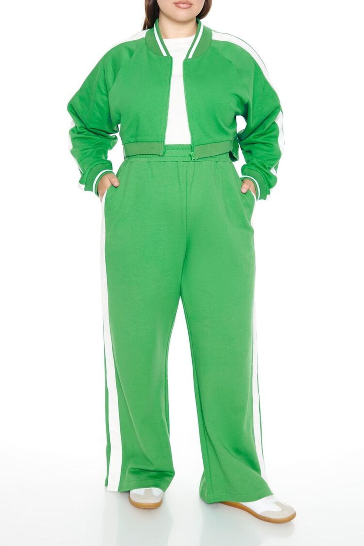 Plus Size Yan Şeritli Fransız Havlu Kumaşı Ceket Plus Size Yan Şeritli Fransız Havlu Kumaşı Ceket 01297685 50