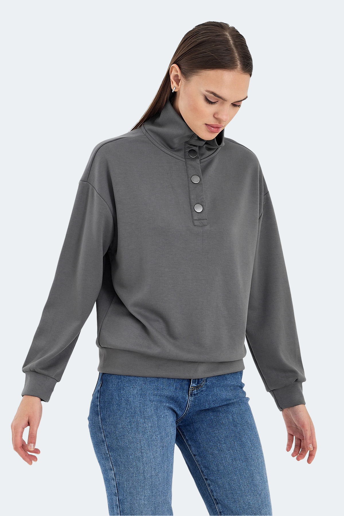 VIDAL Oversize Kadın Dik Yaka Oversıze Koyu Gri Sweatshirt VIDAL Oversize Kadın Dik Yaka Oversıze Koyu Gri Sweatshirt ST24WK009 2XL