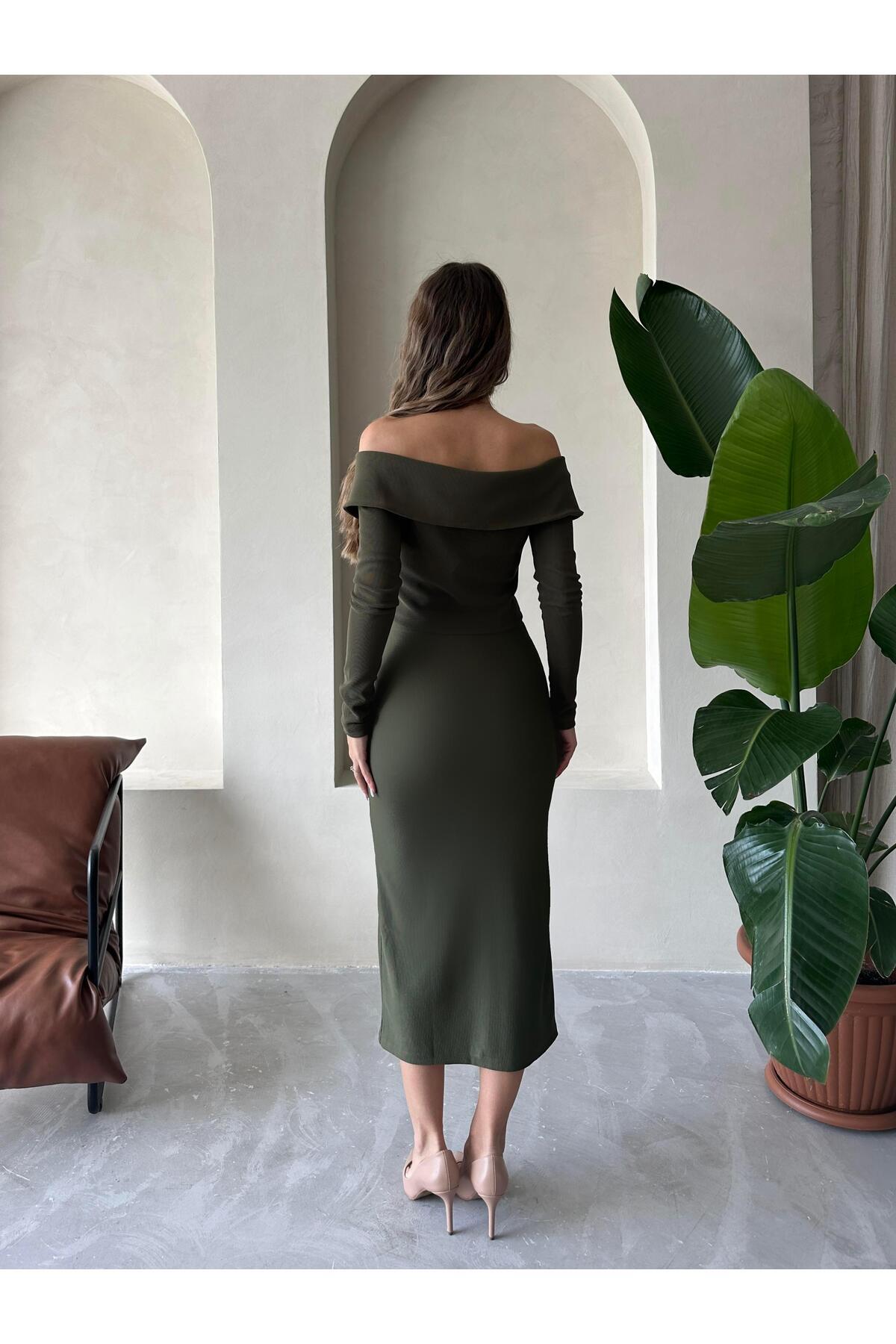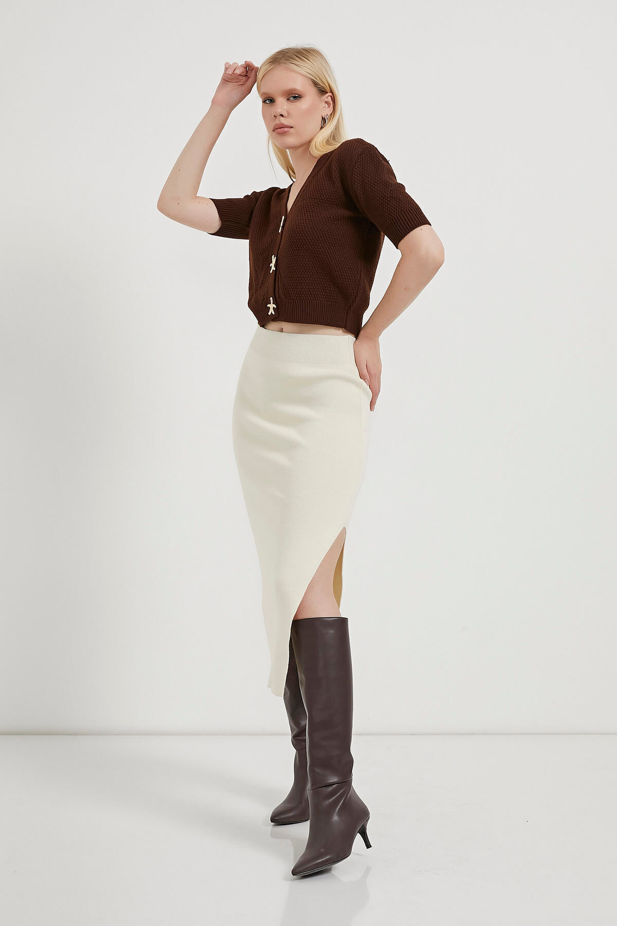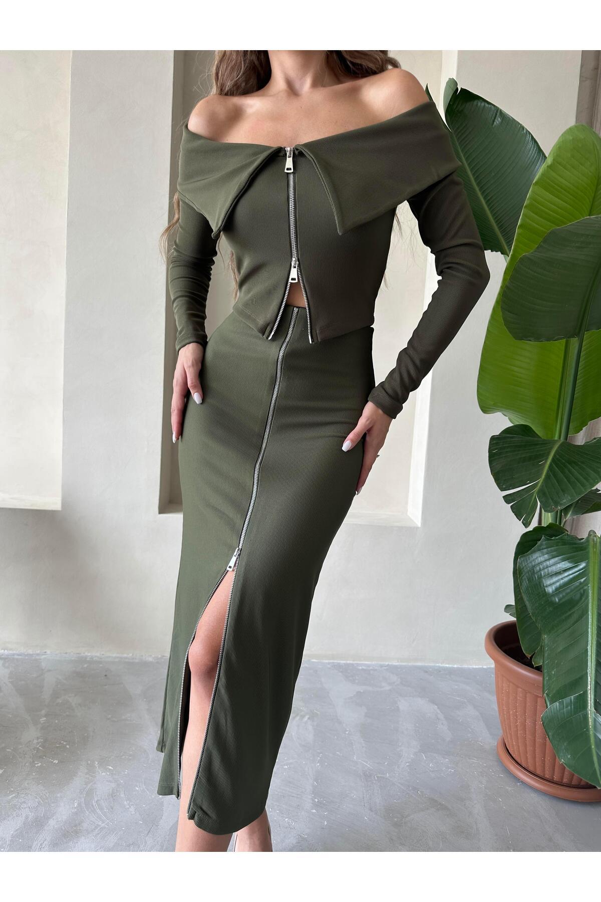 Önden Fermuarlı Triko Etek Haki Önden Fermuarlı Triko Etek Haki STK3101 L