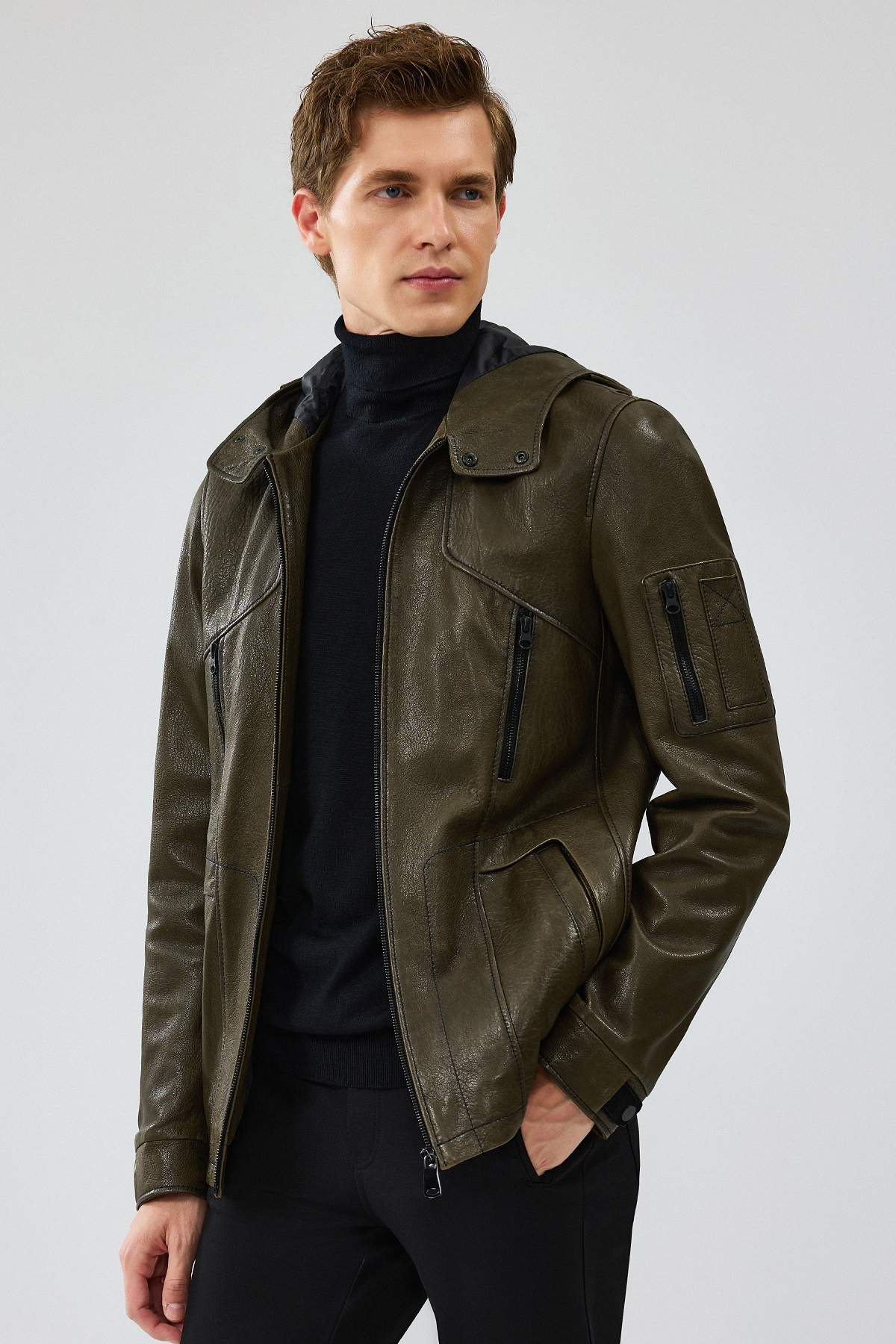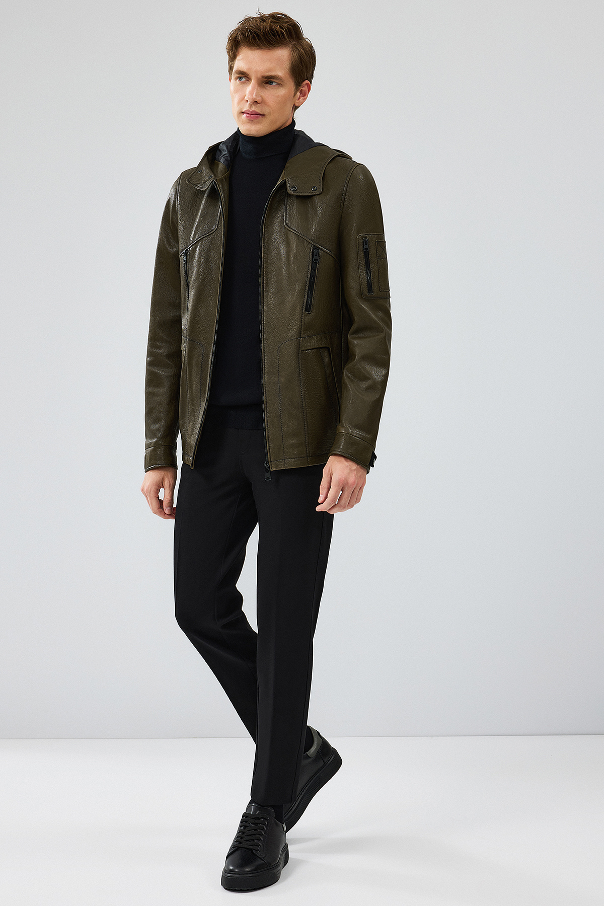 John Erkek Yeşil Kapüşonlu Deri Mont 24WGD6531JB John Erkek Yeşil Kapüşonlu Deri Mont 24WGD6531JB 2XL