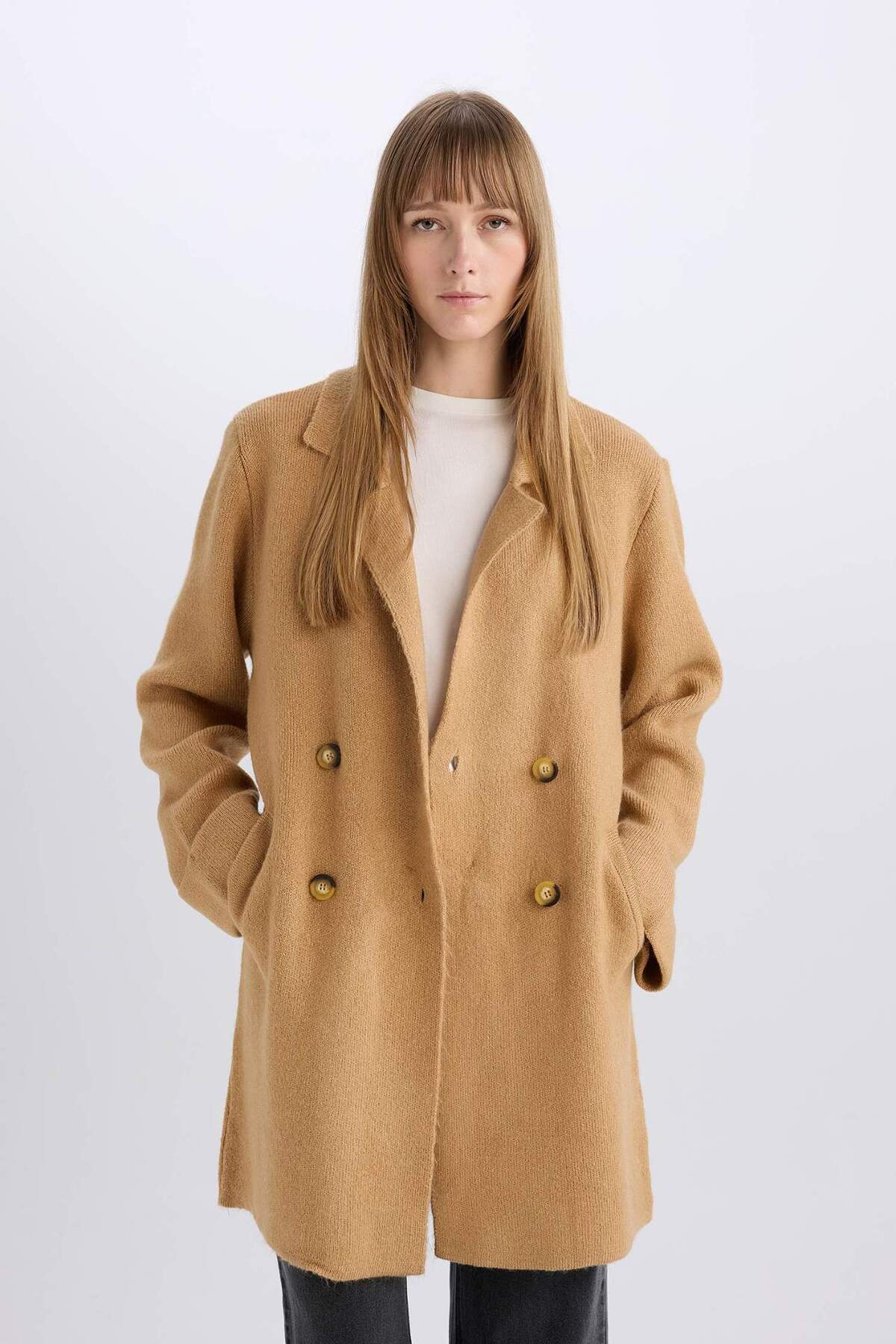 Oversize Geniş Kalıp Kruvaze Kapamalı Düğmeli Cepli Ceket K9002AZ24WN Oversize Geniş Kalıp Kruvaze Kapamalı Düğmeli Cepli Ceket K9002AZ24WN 3131943 L