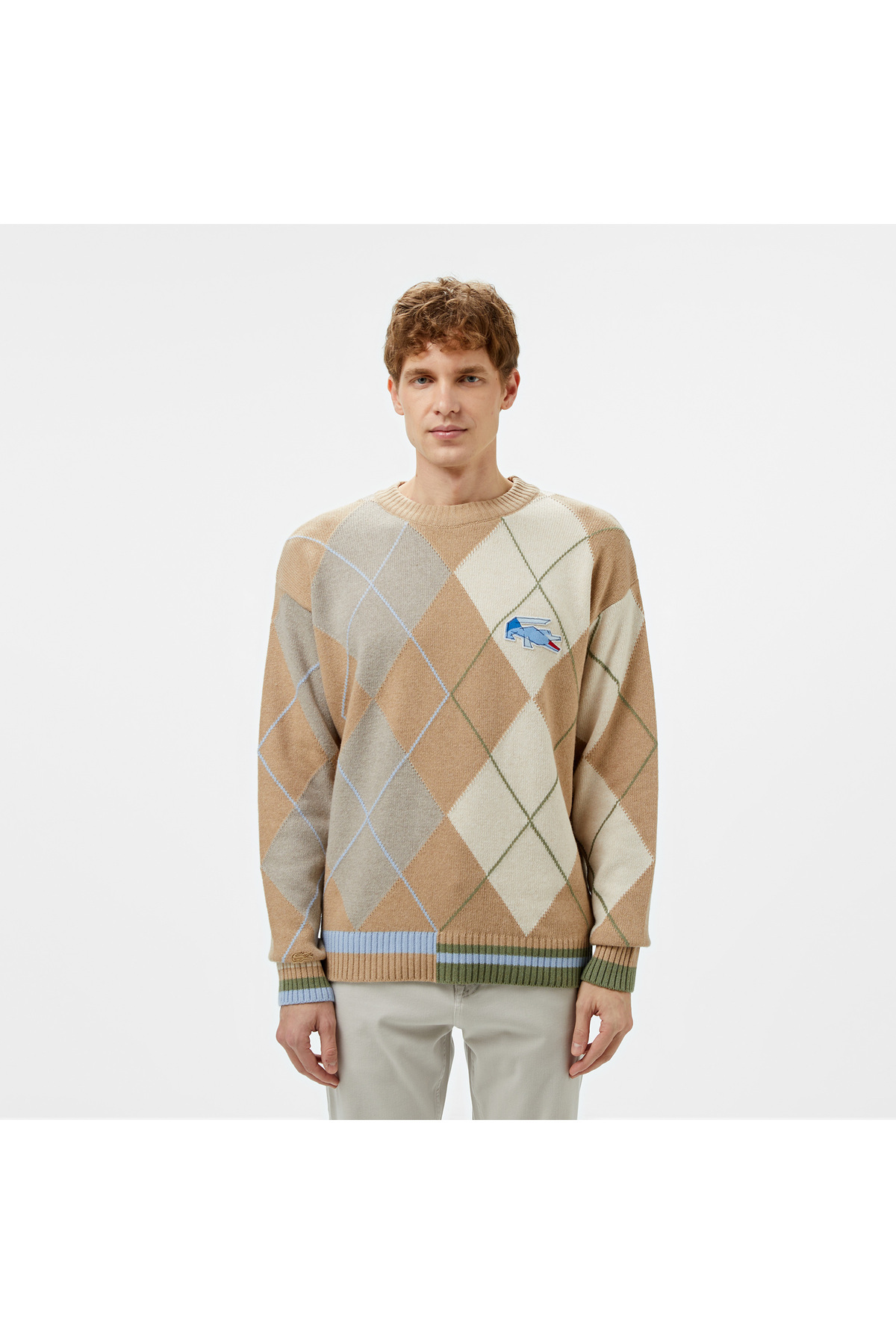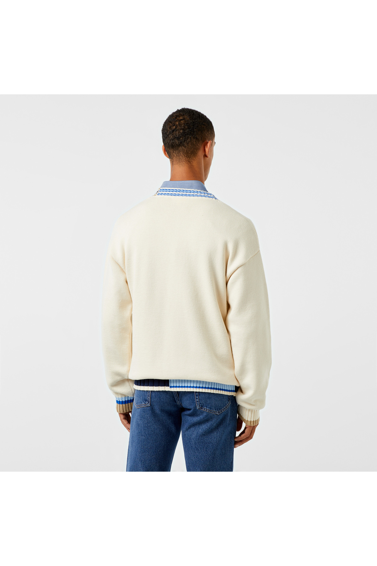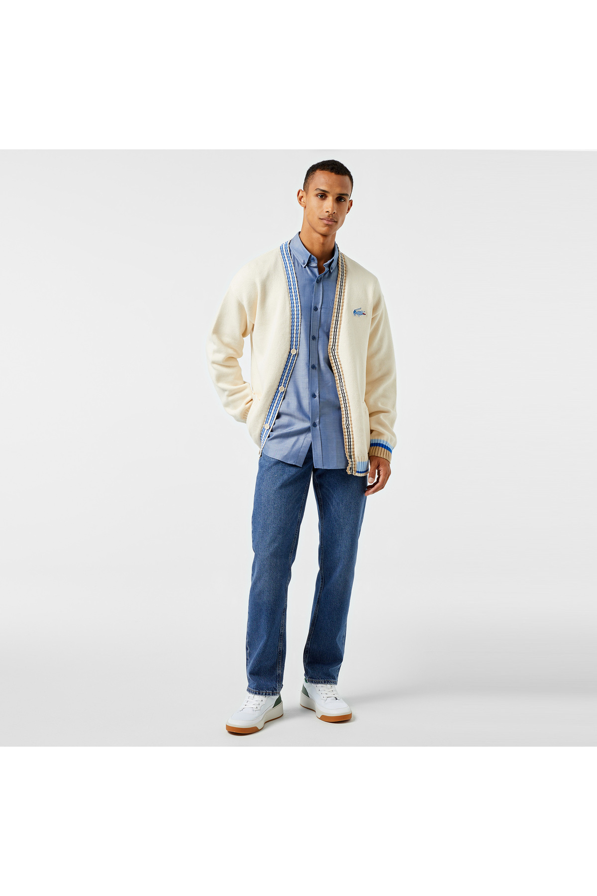 Erkek Loose Fit V Yaka Renk Bloklu Krem Hırka Erkek Loose Fit V Yaka Renk Bloklu Krem Hırka AH2523 XL