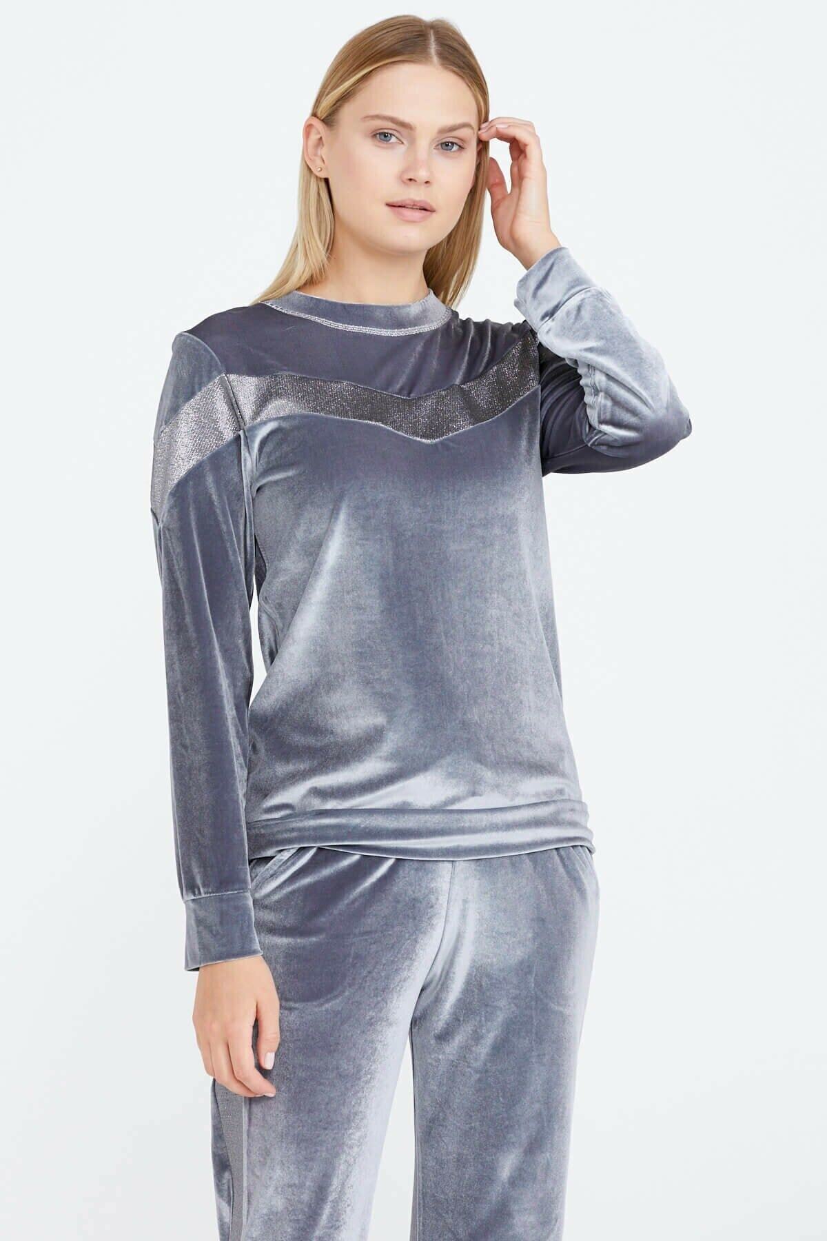 Kadife Dik Yaka Tunik Eşofman Takım - Gri Kadife Dik Yaka Tunik Eşofman Takım - Gri 24K2238-76385.0001 2XL