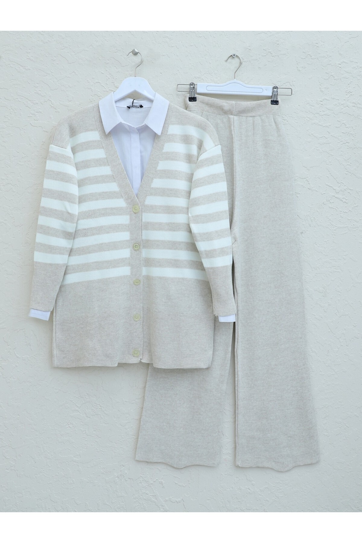 Çizgili Düğmeli Triko Takım -taba Çizgili Düğmeli Triko Takım -taba TY384-1030 Standart