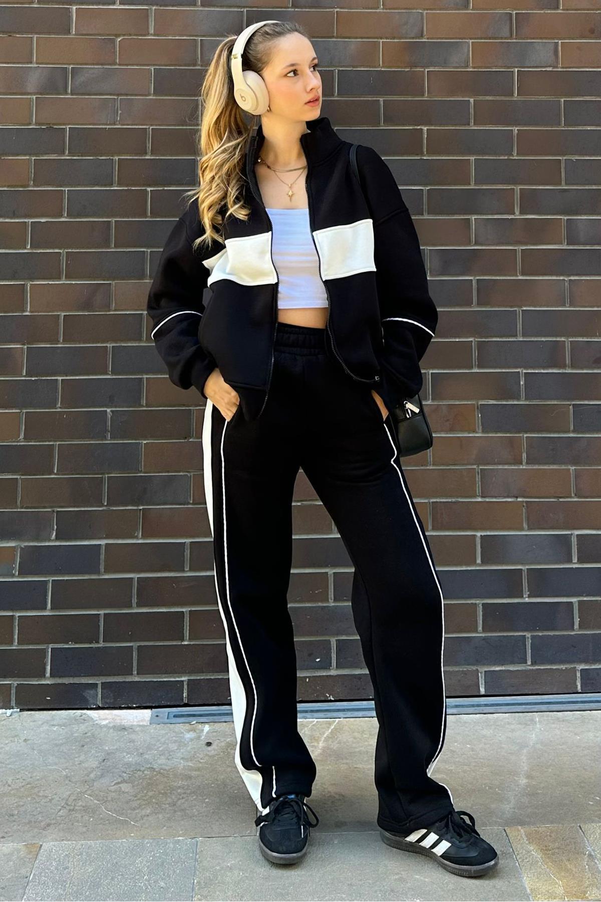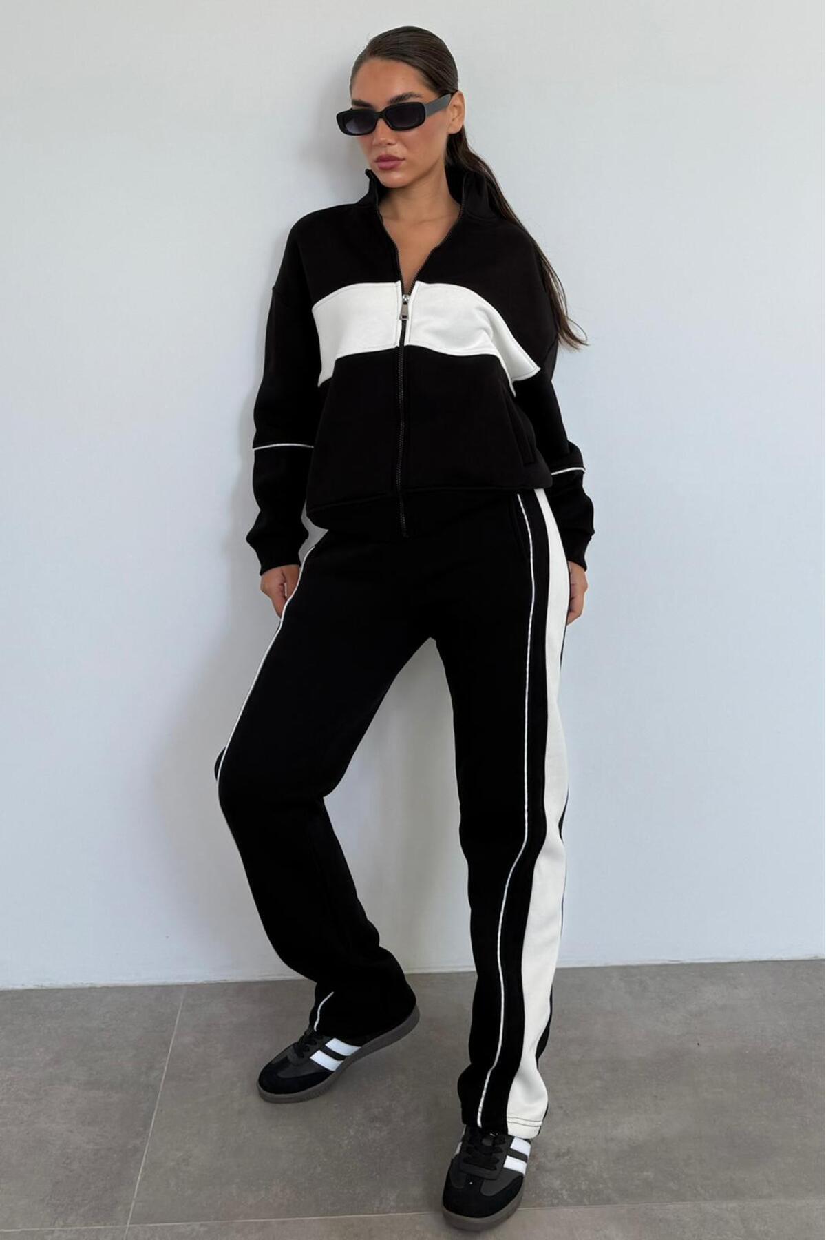 Siyah Dik Yaka Fermuarlı Şeritli Eşofman Takımı MG2216 Siyah Dik Yaka Fermuarlı Şeritli Eşofman Takımı MG2216 XL