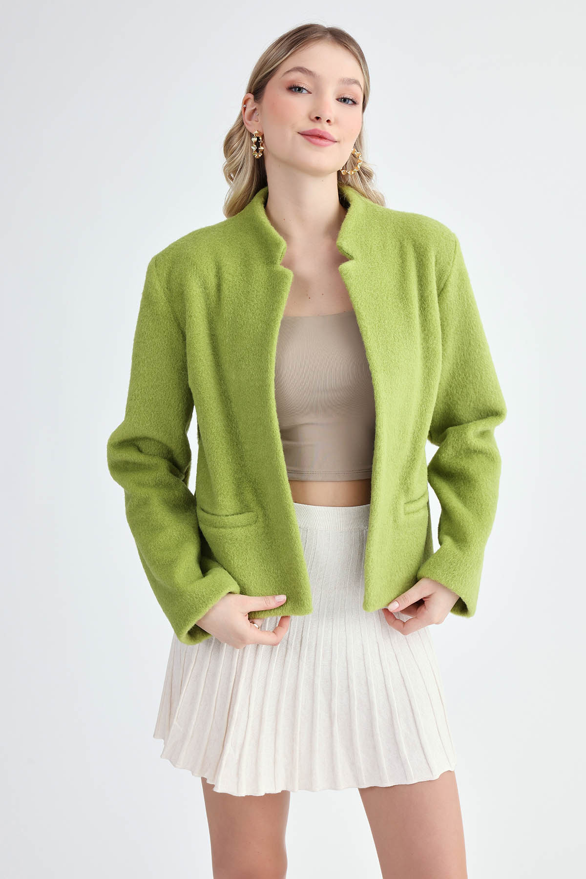Hakim Yaka Keçe Kumaş Vatkalı Ceket Hakim Yaka Keçe Kumaş Vatkalı Ceket 24-837 L