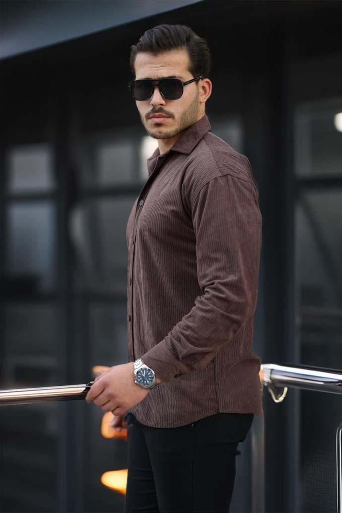 Fitilli Erkek Kadife Gömlek - Kahve Fitilli Erkek Kadife Gömlek - Kahve G10106 XL
