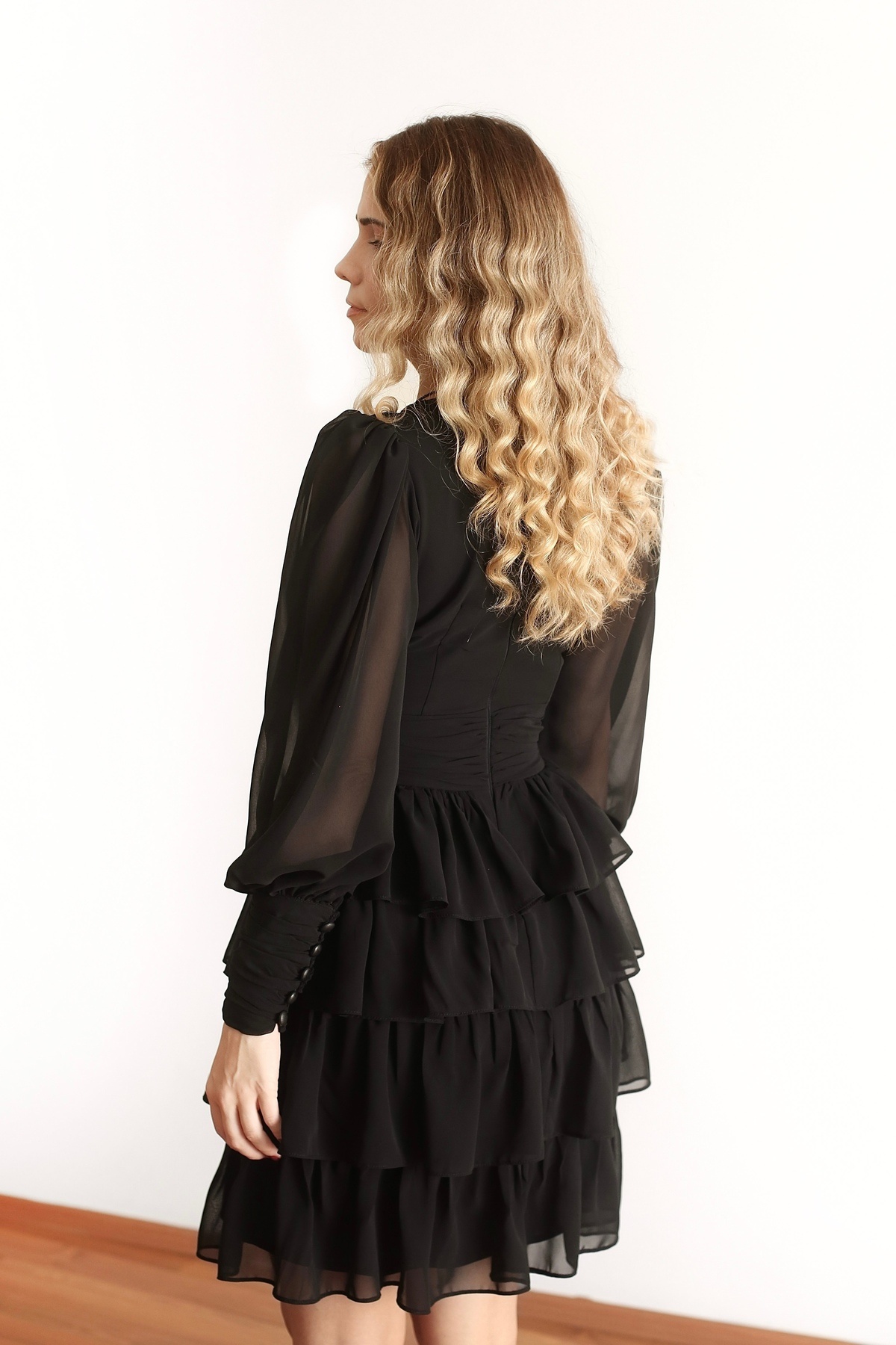 Özel Tasarım Siyah Şifon Mini Elbise Özel Tasarım Siyah Şifon Mini Elbise E1037 XL