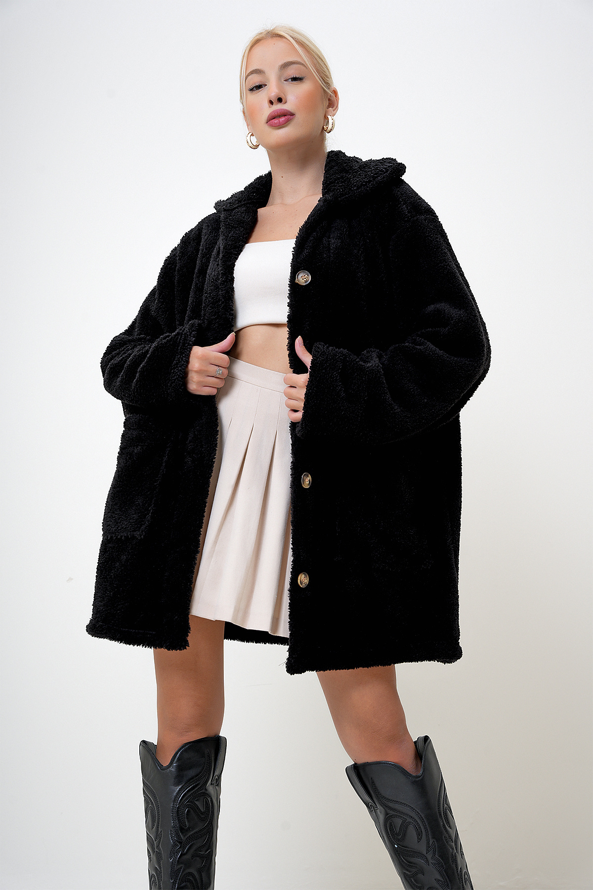 Kadın Kahve Çift Cepli Önü Düğmeli Oversize Peluş Ceket Prm1104 Kadın Kahve Çift Cepli Önü Düğmeli Oversize Peluş Ceket Prm1104 PRM1104 L