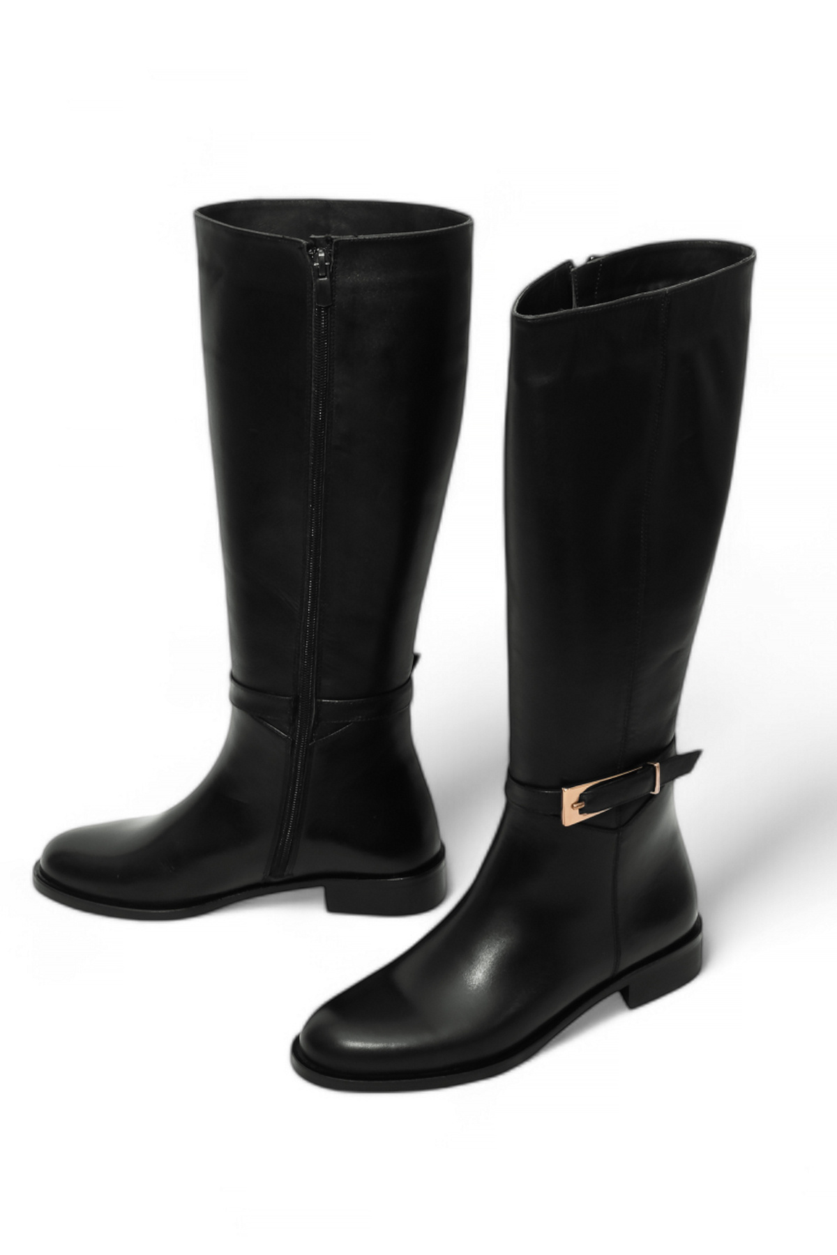 Kadın Hakiki Deri Günlük Çizme Dizaltı Fermuarlı Toka Detaylı Klasik Çizme Siyah Lovva Kadın Hakiki Deri Günlük Çizme Dizaltı Fermuarlı Toka Detaylı Klasik Çizme Siyah Lovva LOVVA 42