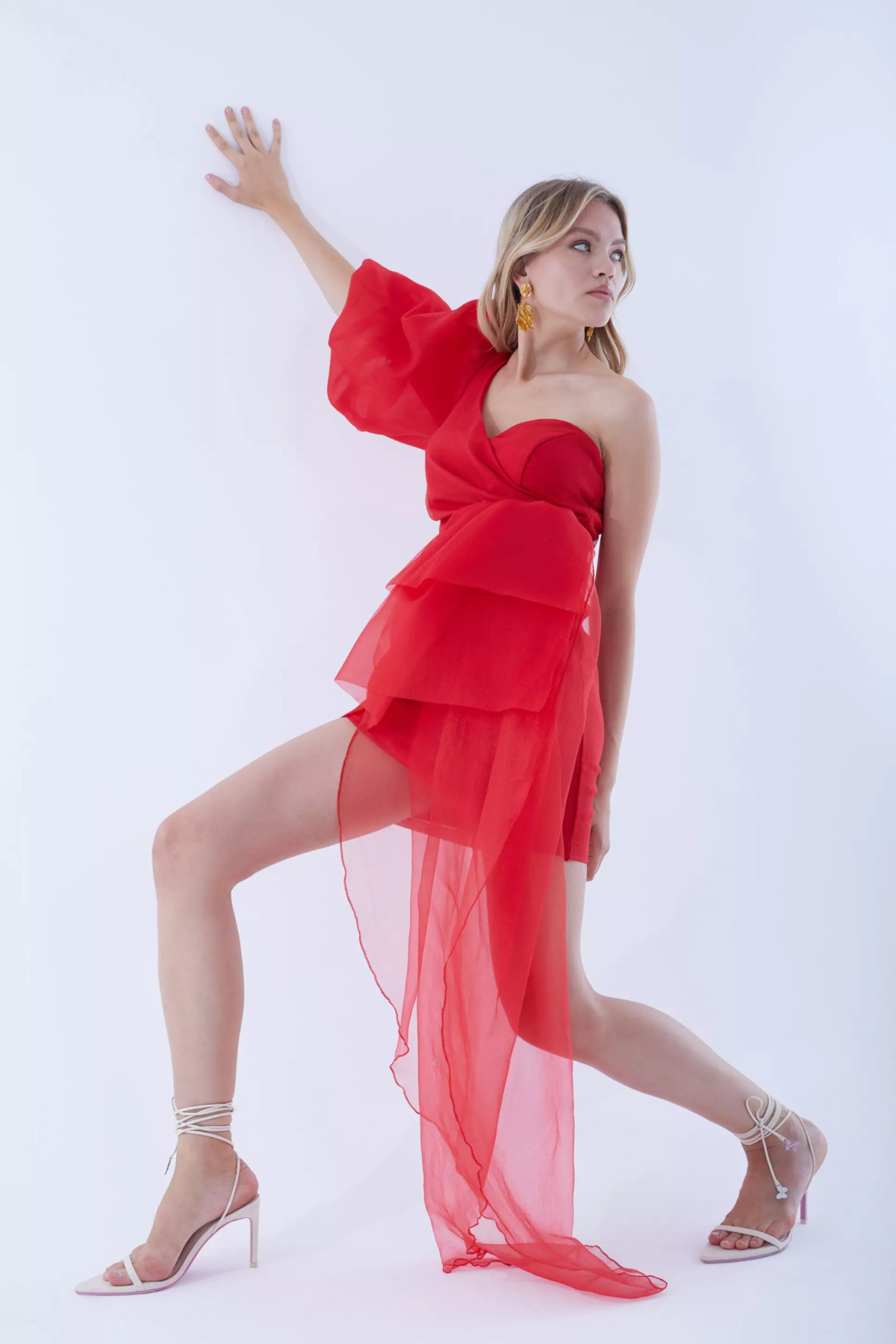 Kırmızı tül uzun kol kısa elbise Kırmızı tül uzun kol kısa elbise 964593-013 40