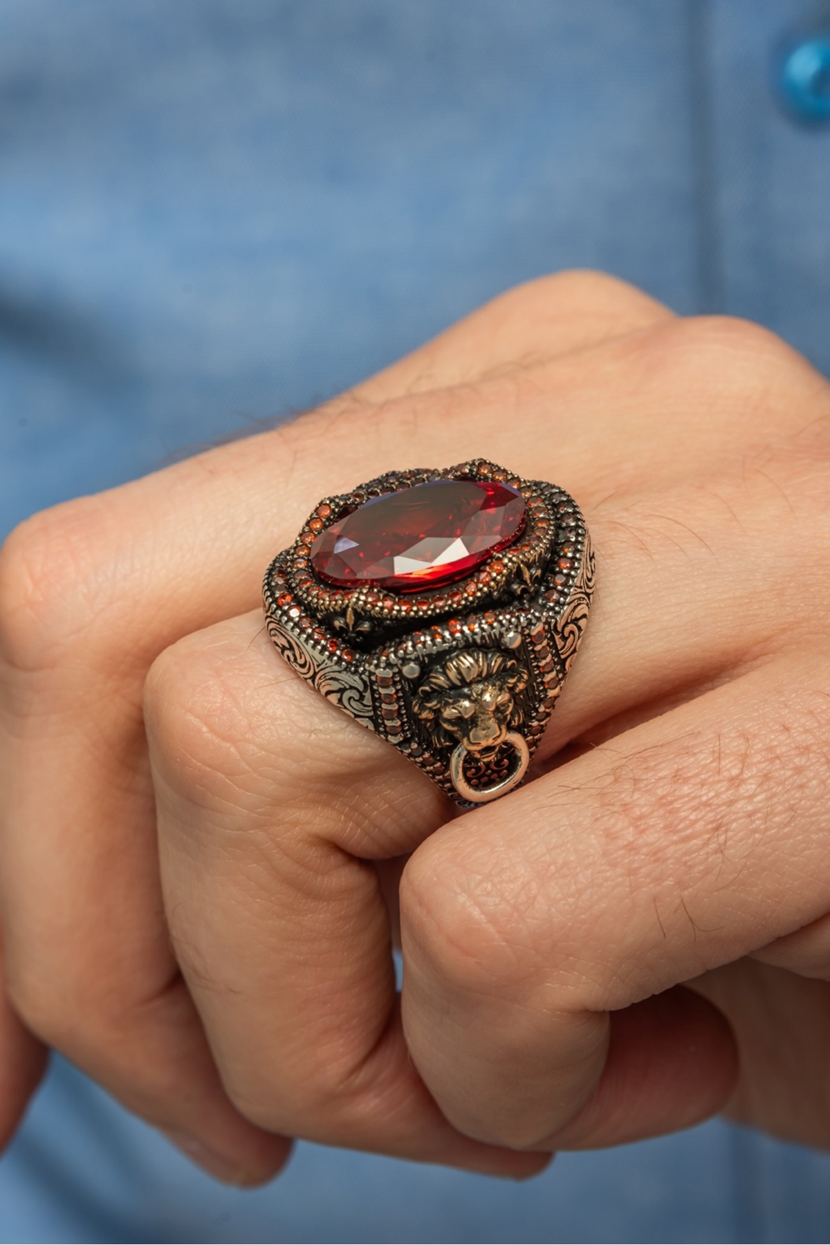 Aslan Başı Kapı Tokmak Modeli Kırmızı Taşlı 925 Gümüş Yüzük Aslan Başı Kapı Tokmak Modeli Kırmızı Taşlı 925 Gümüş Yüzük GNS58787 27