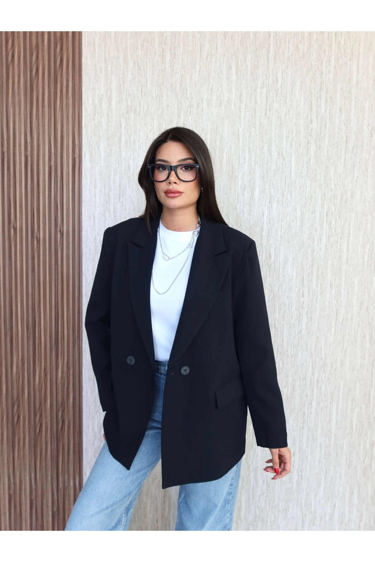 Oversize Düğmeli Blazer Ceket Oversize Düğmeli Blazer Ceket EH-5042 Standart