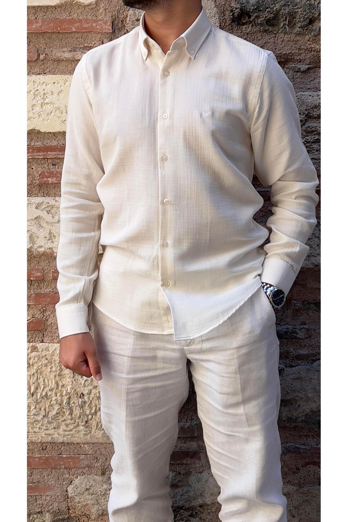 Erkek Müslin Kumaş %100 Pamuk Uzun Kol Rahat Kesim Gömlek Erkek Müslin Kumaş %100 Pamuk Uzun Kol Rahat Kesim Gömlek 231077 XL