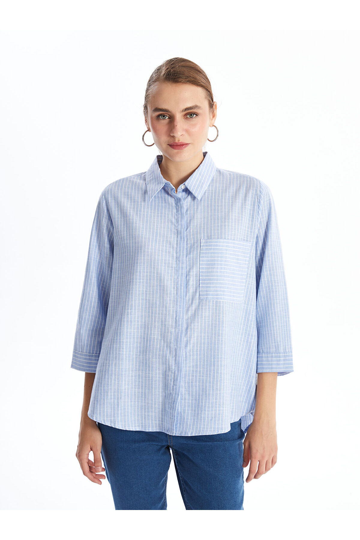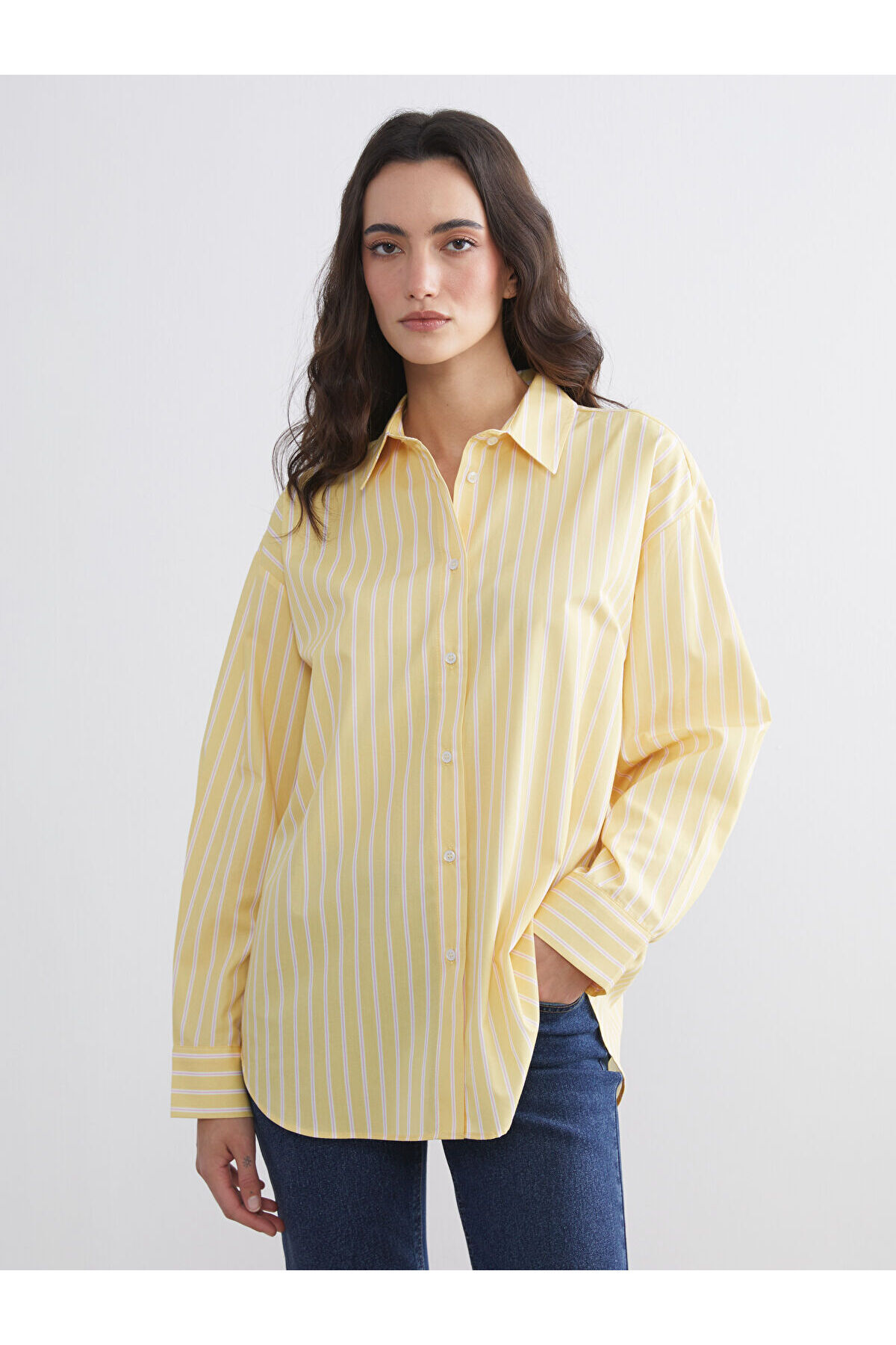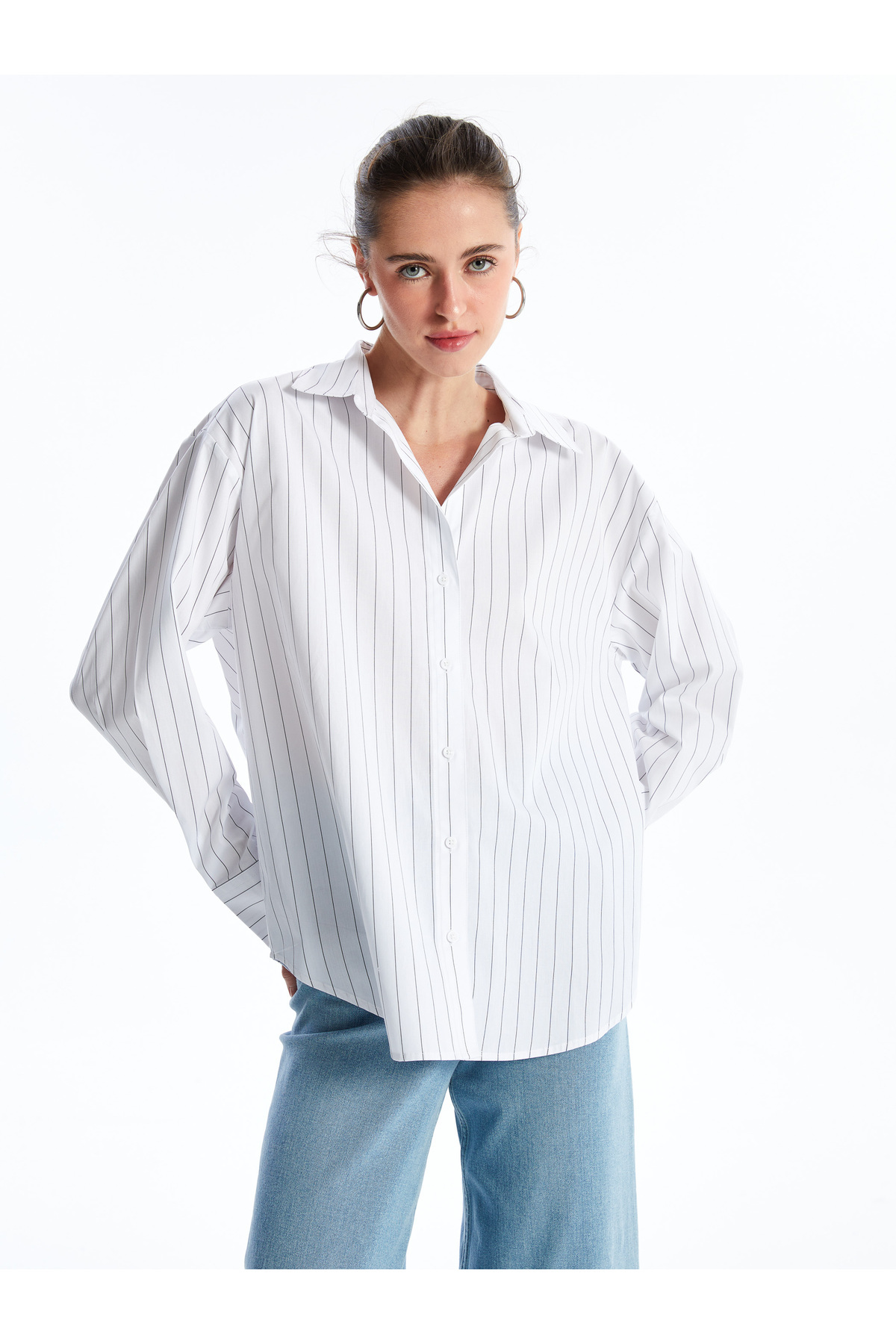 Çizgili Uzun Kollu Oversize Kadın Gömlek Çizgili Uzun Kollu Oversize Kadın Gömlek W44873Z8 2XL