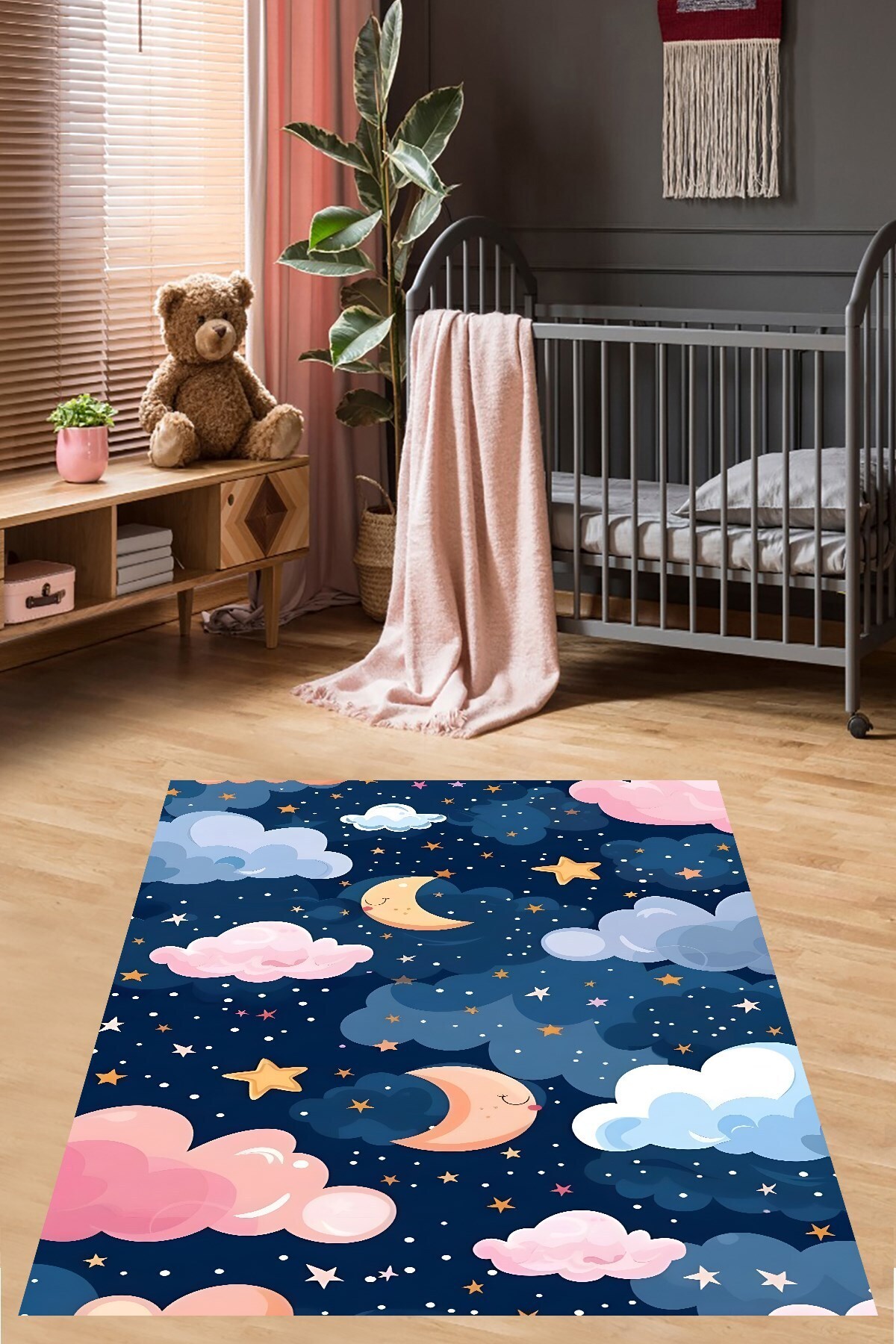 Gece Bulutlar İçinde Ay Yıldızlı Yıkanabilir Kaymaz Taban Leke Tutmaz Çocuk Odası Halısık Gece Bulutlar İçinde Ay Yıldızlı Yıkanabilir Kaymaz Taban Leke Tutmaz Çocuk Odası Halısık PNHC27 160 x 230