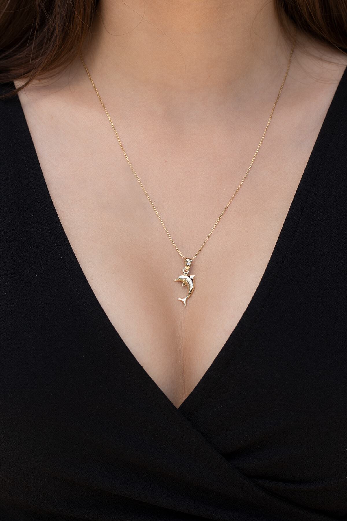 Sade Minik Yunus Beyaz Gümüş Kolye Sade Minik Yunus Beyaz Gümüş Kolye KL2142 تک سایز
