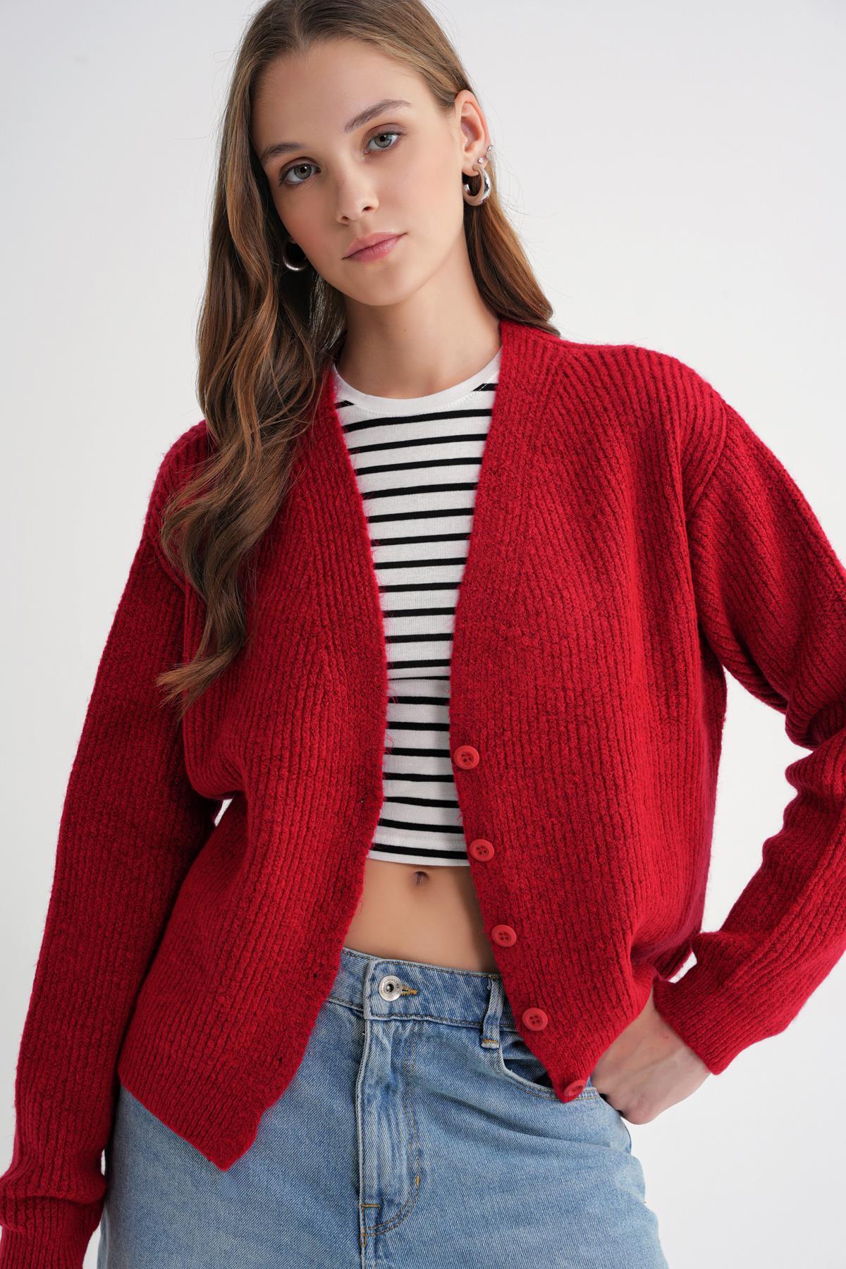 6883 Kadın Fırfır Detay Crop Triko Kazak Kırmızı 6883 Kadın Fırfır Detay Crop Triko Kazak Kırmızı K24KZK6883 Standart