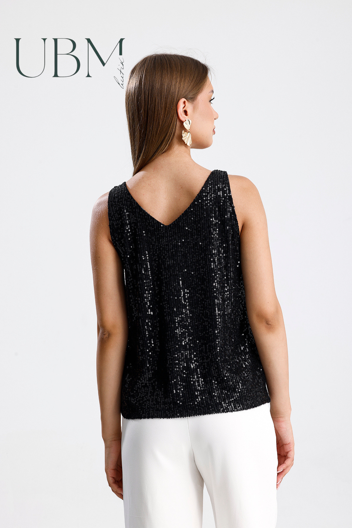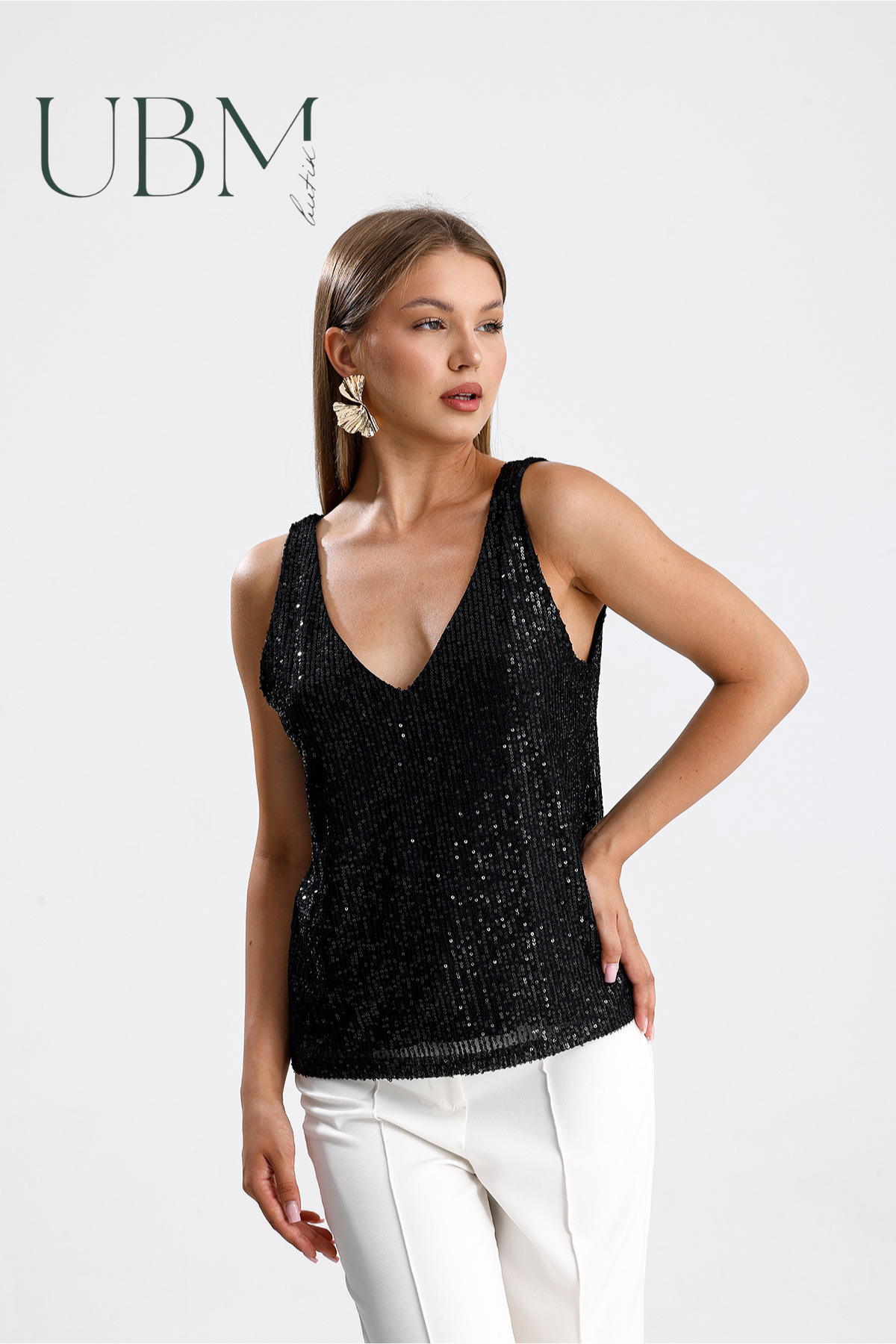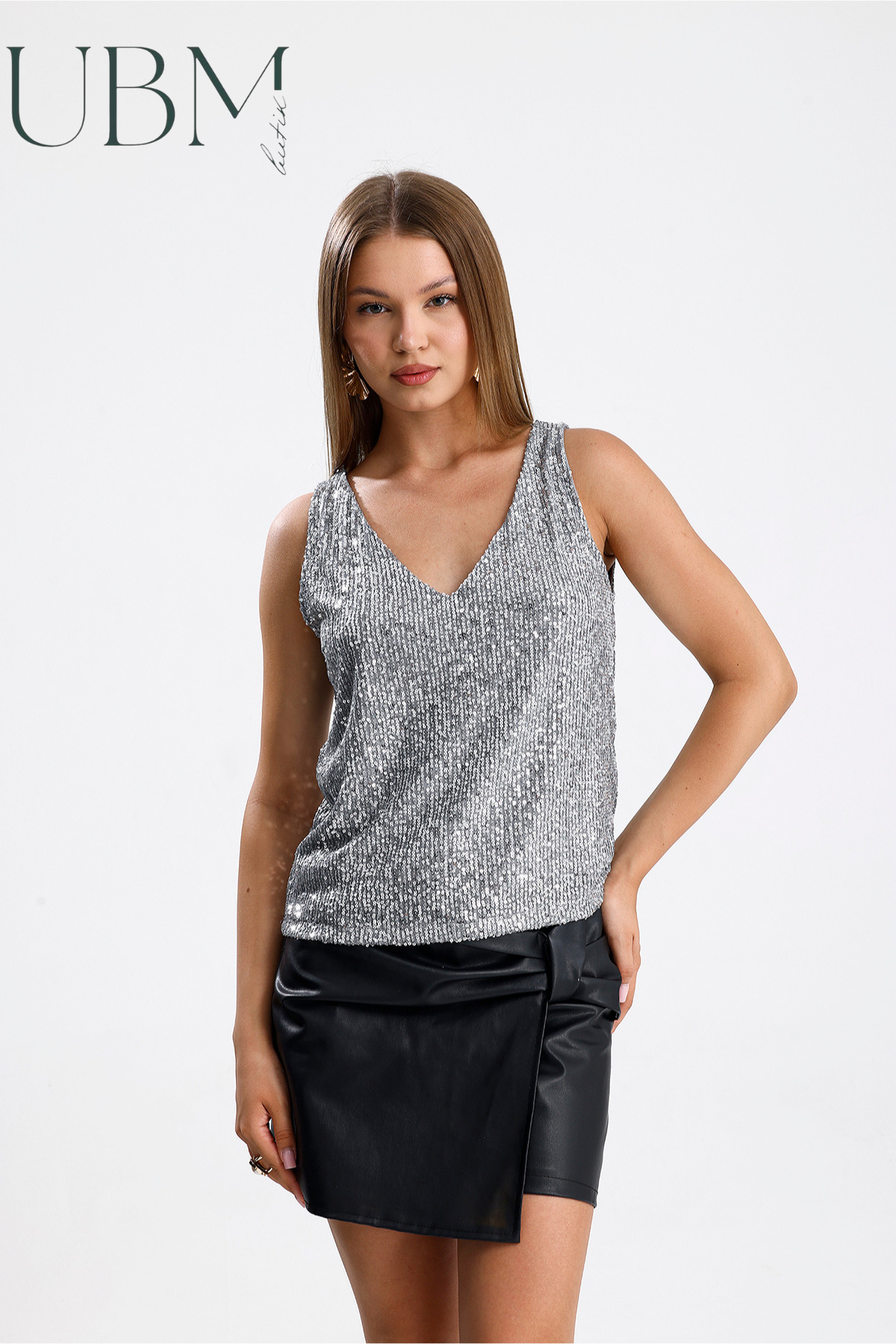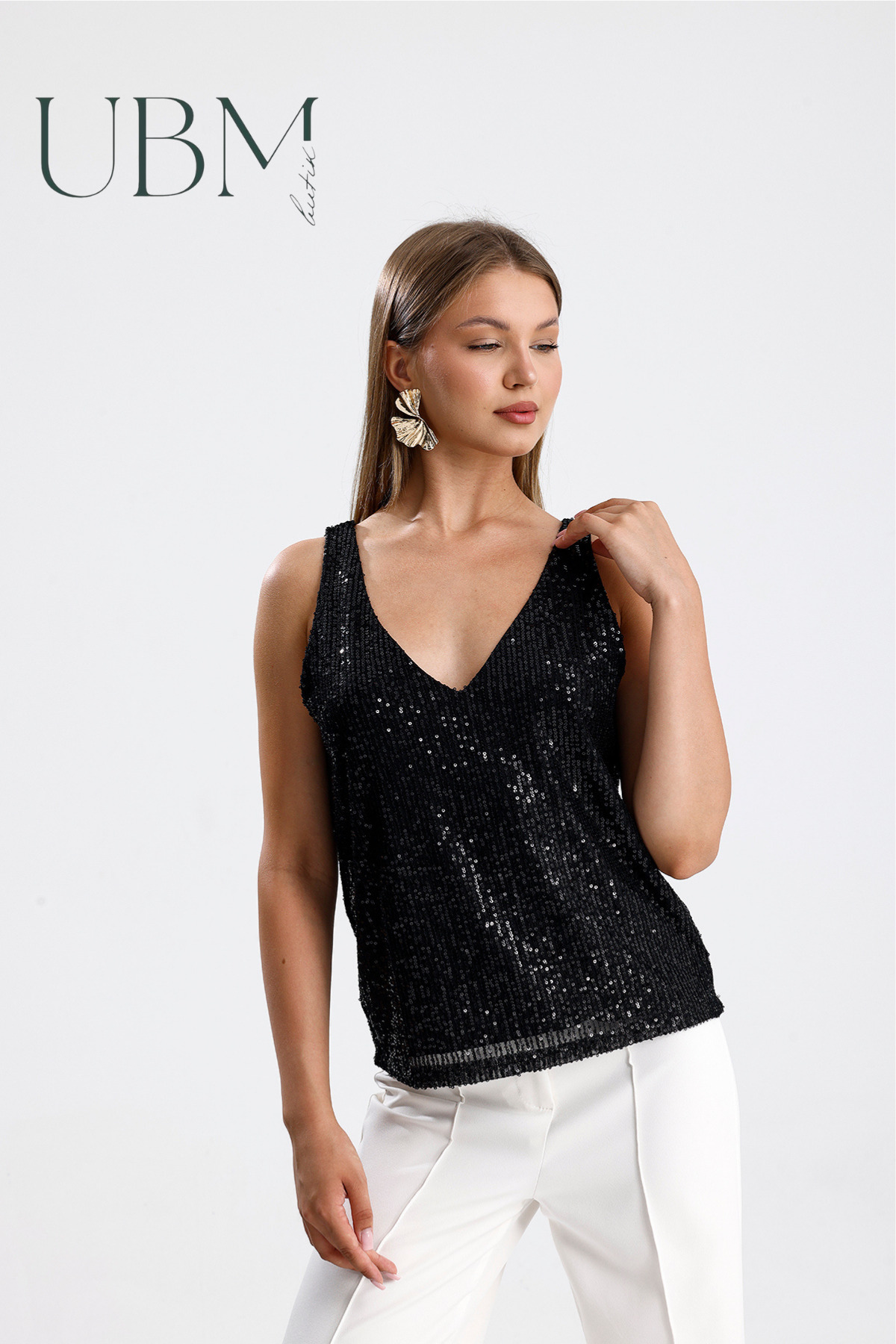 Kadın Bluz - V Yaka Pul Payetli Bluz Kadın Bluz - V Yaka Pul Payetli Bluz UBM-B-002245 S