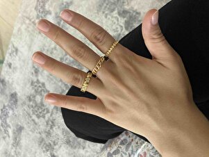 3'lü Gold Yüzük Zirkon Taşlı Kalp Sezar ve Zincir Model Gold Yüzük Set 3'lü Gold Yüzük Zirkon Taşlı Kalp Sezar ve Zincir Model Gold Yüzük Set THE05G9 تک سایز